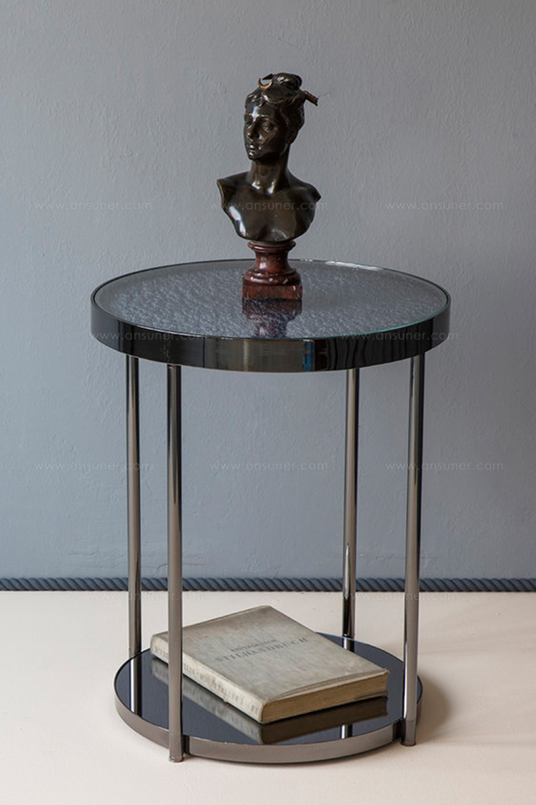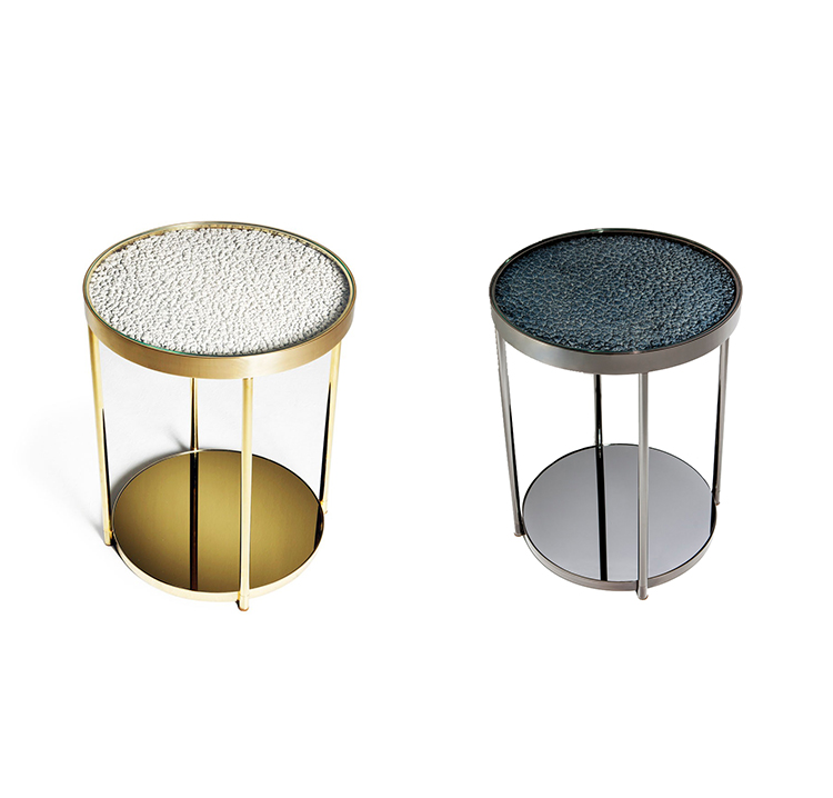 这款Hemlock设计的第二个版本具有更加男性化的感觉,抛光的黑色镍面和深色的镜面玻璃底。 月球状聚氨酯顶部采用靛蓝色调手工喷涂,以突出深度变化。原始白色顶部的照片固定在桌面的下侧,并在底座的镜子中反射。 这造成了同时看到白天和黑夜的错觉。