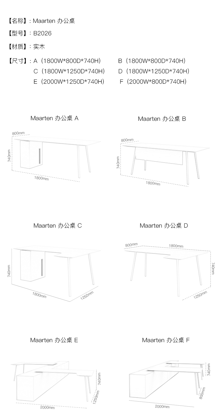 Maarten 办公桌 系列尺寸/示意图