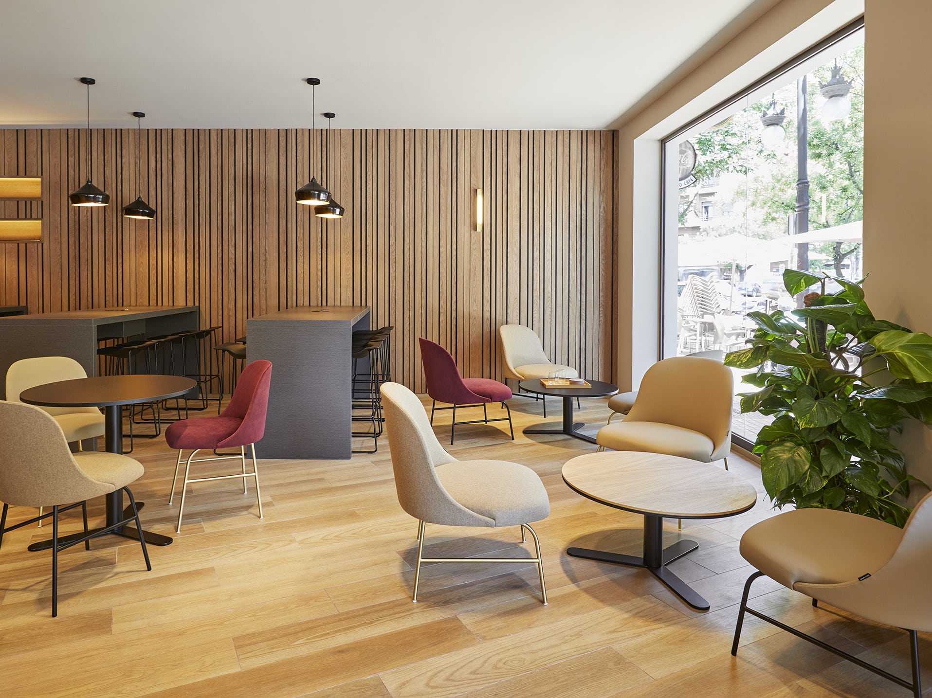 它已经扩展到包括新的休闲椅,小酒馆桌子和带扶手的椅子,这些椅子有多种高度和饰面,非常适合需要非常舒适的协作空间。