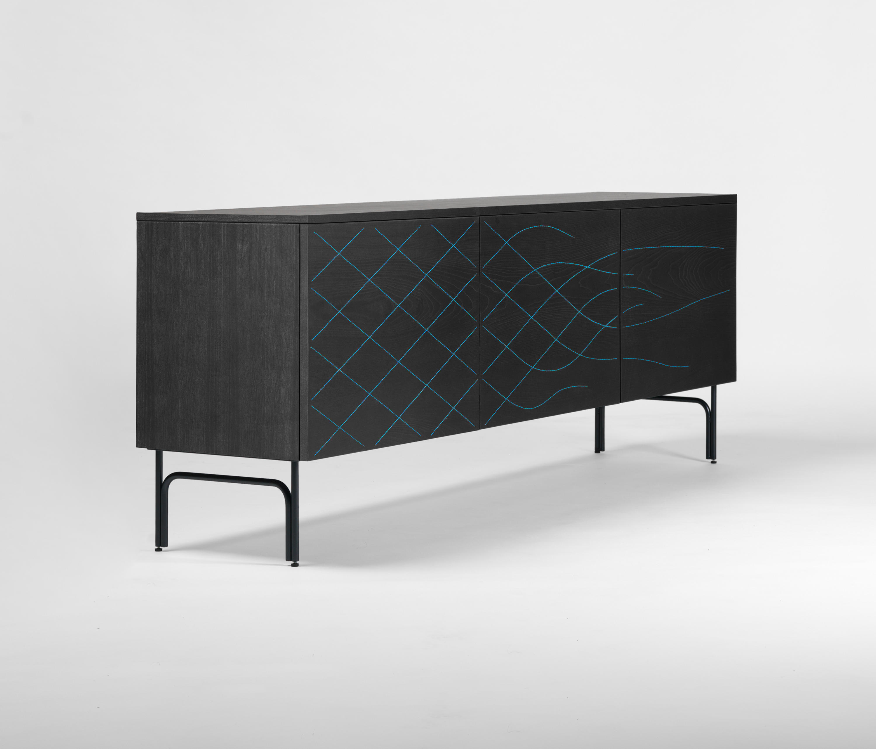法格与布兰奇(Färg&Blanche)设计了一款功能齐全的柜子,带有简单的装饰图案。提供天然木材或黑色染色,并缝有不同颜色的线。