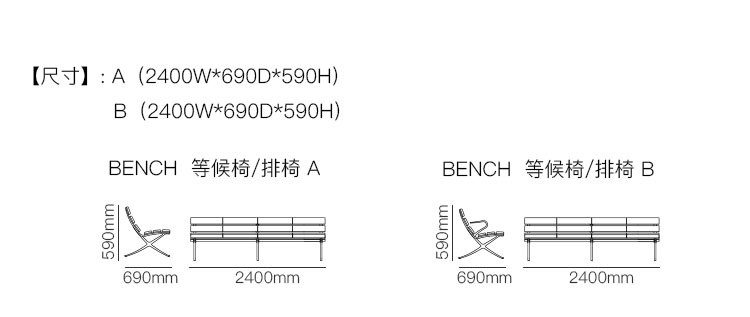 BENCH 等候椅/排椅 系列尺寸/示意图
