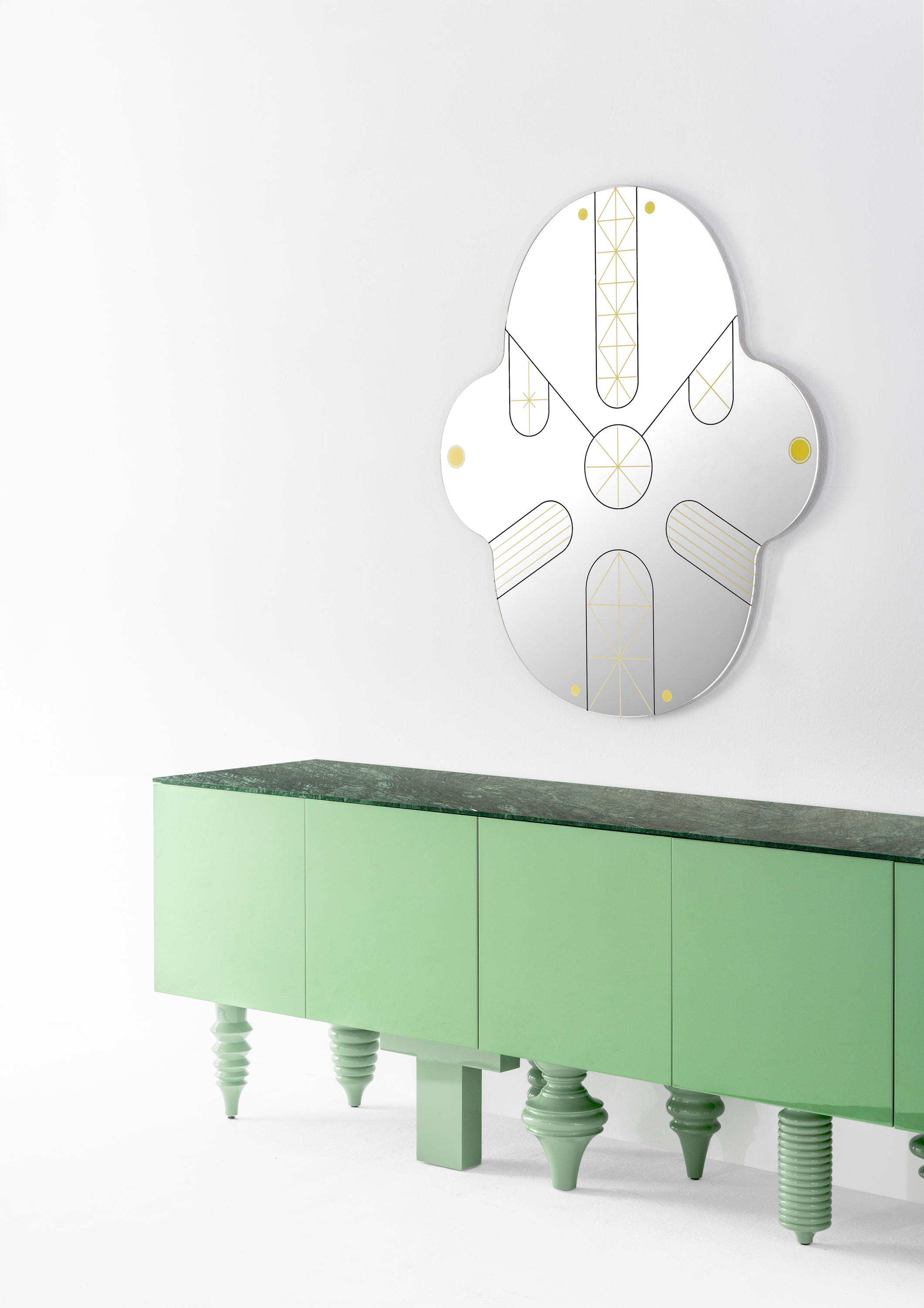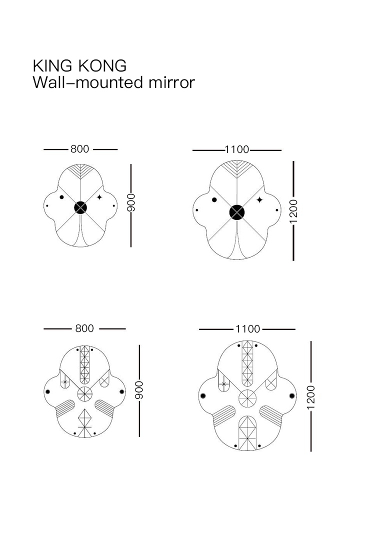 两个大小不同的镜子,采用金色和黑色设计。镜子的背面为黑色。