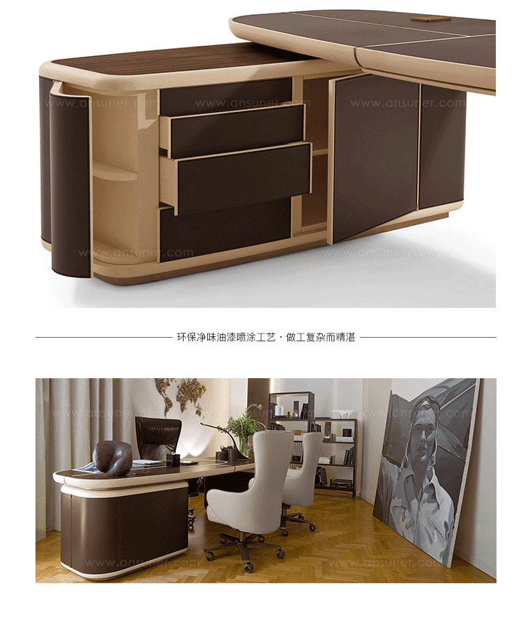 是可能的左边或者右边的操作面覆盖着 马鞍皮革,由4个抽屉和两扇门 内部开放的隔间。 可以有马鞍皮革顶部 或印度紫檀插入。