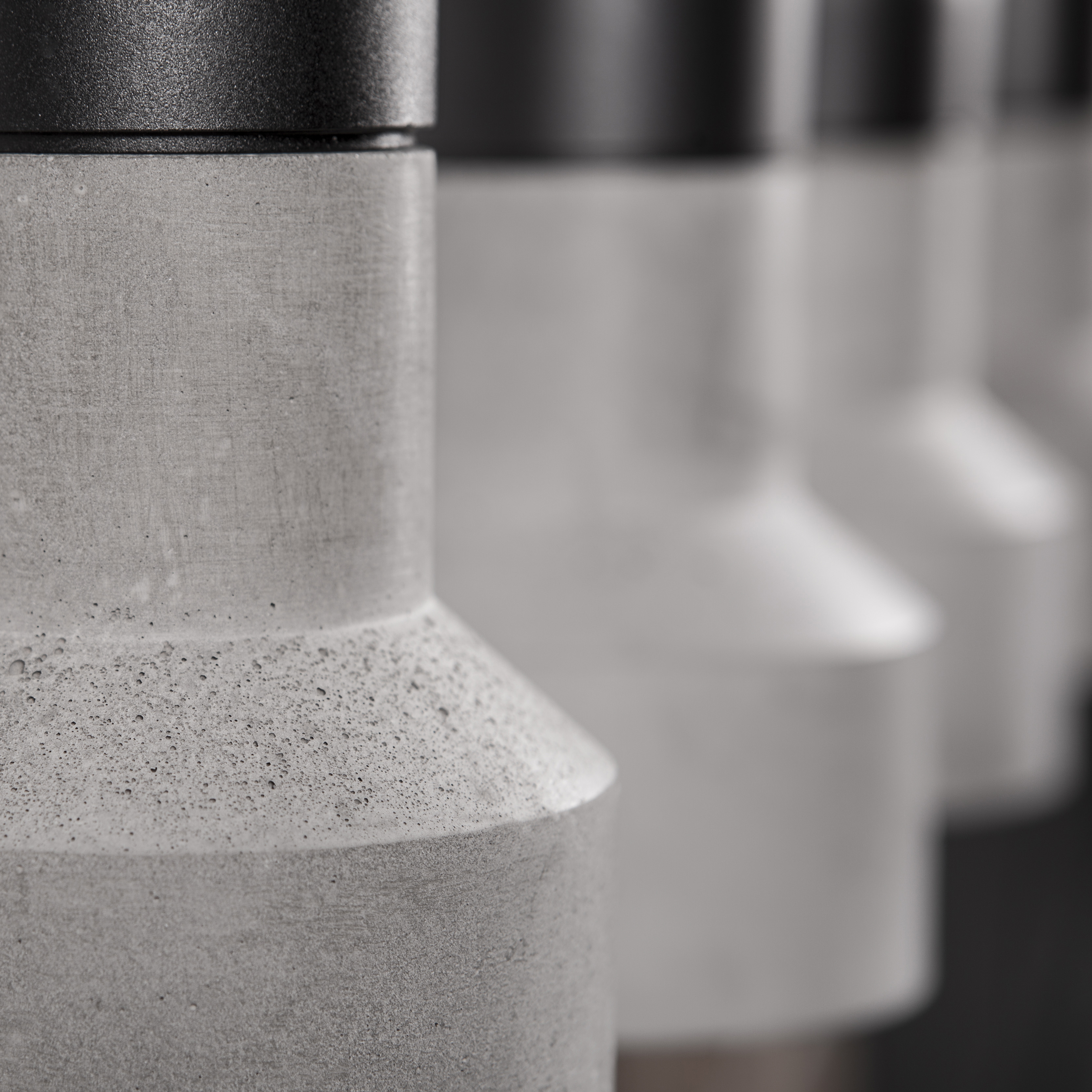 一件产品因为用心而产生精神,因为自然的材质创造出心情的平和,因为朴拙的美与人本性相通,才是一个面向未来的产品美学方向,制造的方式只是表象。 灰哑粗糙的混凝土和精致光滑的金属在视野中激烈交战。五颜四色中一抹灰,比五颜四色耀眼,精神。因为我们更愿意把眼睛停留在混凝土独特的色泽和肌理上——它是人造的,却像来自自然。丰富、斑斓、形式多样,可以做到表面肌理细腻如织,又可狂放粗糙,似乎天造使然。