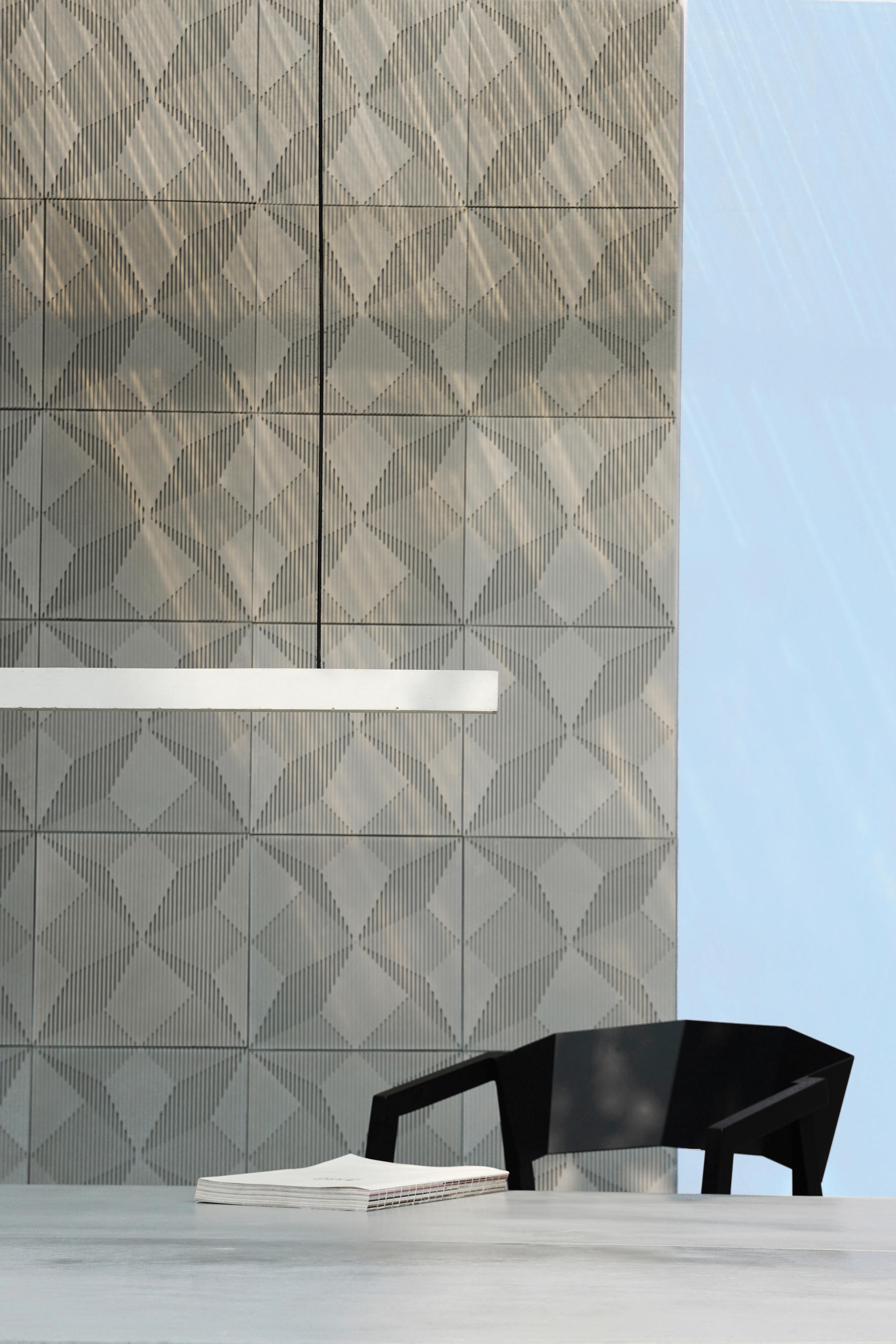 墙砖采用混凝土材料与陶瓷边角料混合灌注,一体脱模而成; 以50%的废弃瓷砖搅碎,充当骨料混合到混凝土材料中; 获红点奖评语: “影”墙砖会因应人视线角度变化,持续地为感官带来令人惊叹的新鲜感。它不断呈现出新的影像,强化作为装饰墙砖的视觉效果。 这些墙砖背后的创新设计理念,乃至成品的耐用性和性价比都令人印象深刻。此外,这产品更是可持续发展理念的一个完美实践。