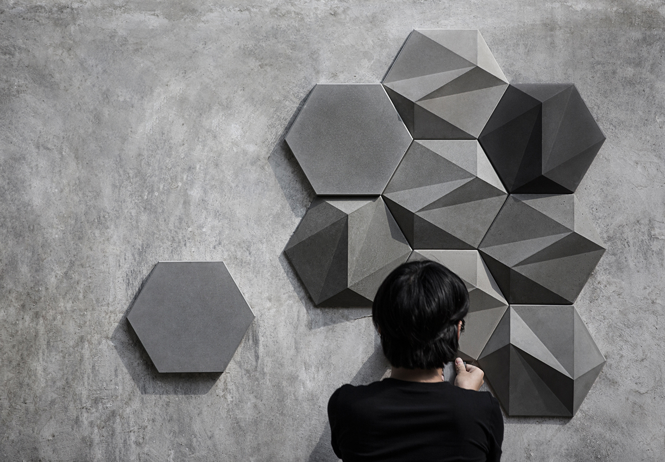 “伞”墙砖已荣获2015年EDIDA国际设计大奖最佳墙面奖 。 同样是经过精心设计切割的石,一个是钻石一个是水泥。 钻石因广告成就为奢侈品,水泥则因创造者对品质的极致渴望。 我们坚持用这种任性难把控的材料,坚持拒绝一切后期处理,坚持一体出模达到光洁平整,棱角分明精确的品质。 很难,只因水泥很美。
