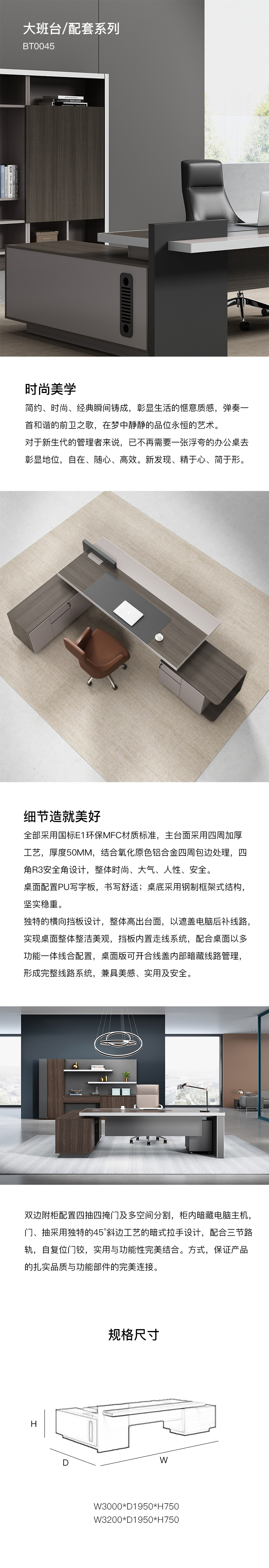 简约、时尚、经典瞬间铸成,彰显生活的惬意质感,弹奏一 首和谐的前卫之歌,在梦中静静的品位永恒的艺术。 对于新生代的管理者来说,已不再需要一张浮夸的办公桌去 彰显地位,自在、随心、高效。新发现、精于心、简于形。