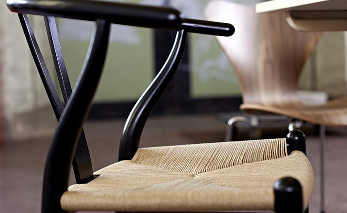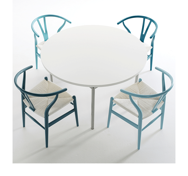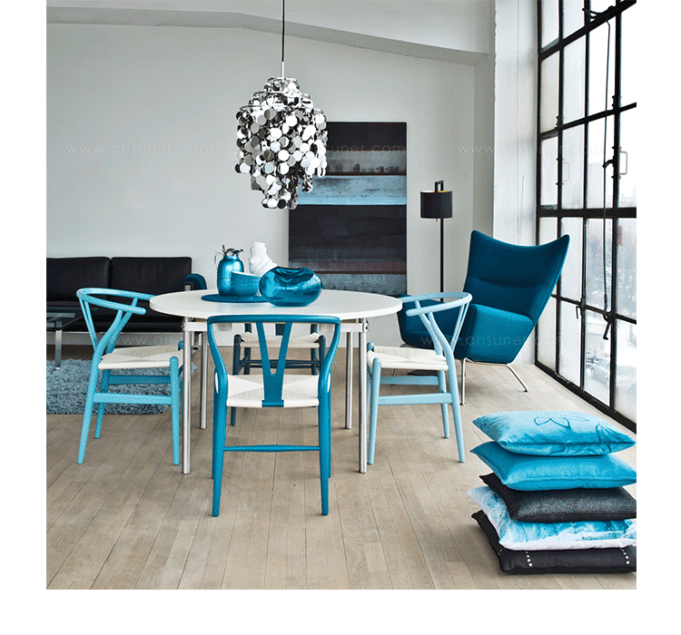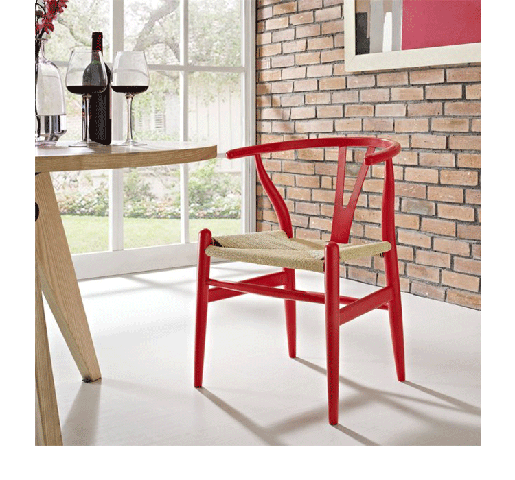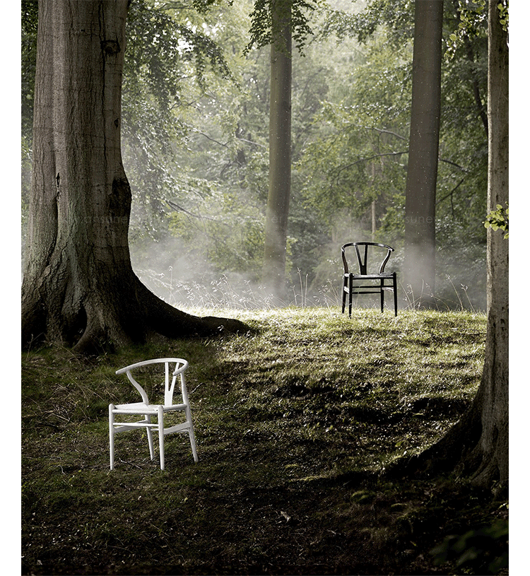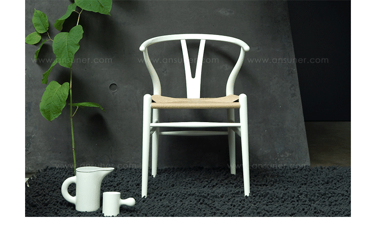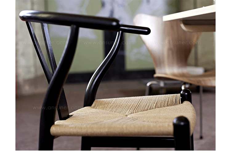 Y椅子是Hans J.Wegner最著名的作品。 它具有重量轻、有吸引力、舒适、中式风格等特点。 该款设计灵感来源于中国传统家具,四平八稳,古色古香,大气自然。上圆下方,浑然天成,深受中国顾客喜欢。Y椅关键在于是工艺与简约的设计,有着清晰的线条。 尽管椅子简约的外观要超过100个步骤进行。除其他事项外,手工编织座垫超过120米的线。 材料有丹麦硬木(橡木,榉木,水曲柳)以及北美硬木(胡桃木,樱桃木)等。外表可漆成各种各样的颜色。 垫子的座位可以添加额外的舒适。