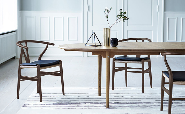 Y椅子是Hans J.Wegner最著名的作品。 它具有重量轻、有吸引力、舒适、中式风格等特点。 该款设计灵感来源于中国传统家具,四平八稳,古色古香,大气自然。上圆下方,浑然天成,深受中国顾客喜欢。Y椅关键在于是工艺与简约的设计,有着清晰的线条。 尽管椅子简约的外观要超过100个步骤进行。除其他事项外,手工编织座垫超过120米的线。 材料有丹麦硬木(橡木,榉木,水曲柳)以及北美硬木(胡桃木,樱桃木)等。外表可漆成各种各样的颜色。 垫子的座位可以添加额外的舒适。