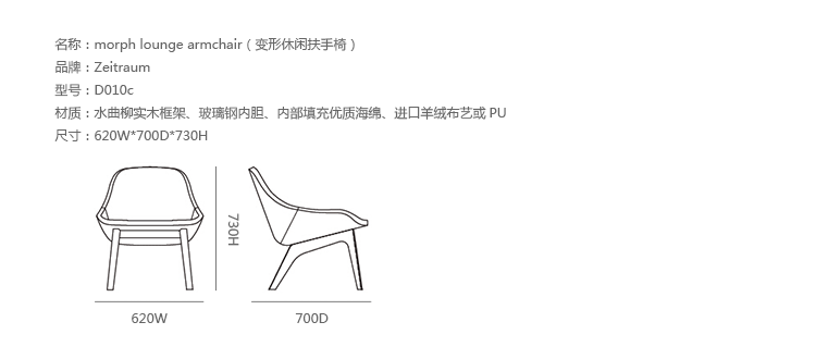 德国家具厂牌 ZEITRAUM 讲究的不仅仅是家具,它着重的是一种"生活态度",每件 ZEITRAUM 家具除了需具备实用、耐用、容易搭配的基本要件,更重要的是可以衬托用户与空间的个性,简约取代夸张花俏的线调,细腻精巧的做工低调传递华体会体育官方在线官网缜密的设计思维。ZEITRAUM 使用来自永续森林的落叶型硬木,表面以有机油/蜡涂装,完全不使用化学物质,让用户与家具在空间自由呼吸。具有高舒适性和稳定性的 Morph系列休闲椅,由丹麦设计工作室Formstelle设计,结合实木脚架搭配层压板椅座,其流畅且精致的外观造型,只需要一个很小的区域便能散发出简约低调的质朴美感。