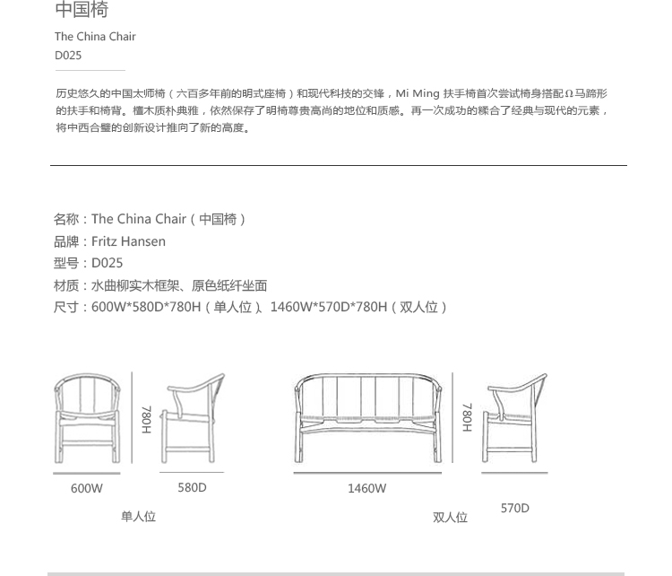 歷史悠遠的中國太師椅(六百多年前的明式座椅)和現代科技的交鋒。Mi Ming 扶手椅首次嘗試椅身搭配 Ω 馬蹄形的扶手和椅背。檀木质朴典雅,依然保存了明椅尊貴高尚的地位和質感。再一次成功的揉合了經典與現代的元素,將中西合璧的創新設計推向了新的高度。