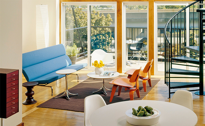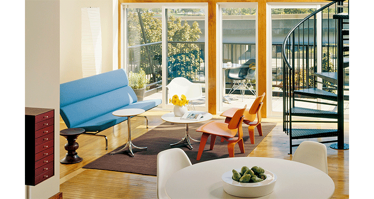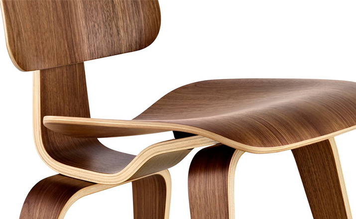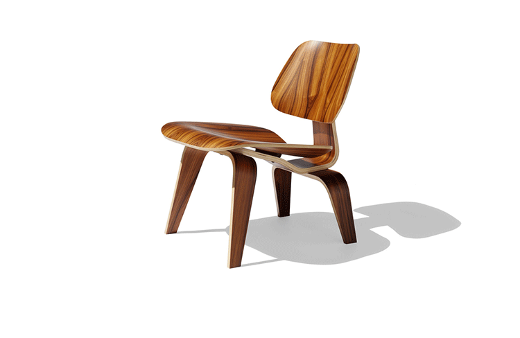 Designers Charles and Ray Eames established their long and legendary relationship with Herman Miller in 1946 with the boldly original molded plywood dining and lounge chairs.Designed to comfortably fit the body,the sculpted form of the molded plywood chairs are produced using thin sheets of lightweight veneer gently molded into curved shapes with natural rubber shock mounts to absorb movement.Since then,the chairs'aesthetic integrity,enduring charm, and comfort have earned it recognition as the best of modern design.Available in either a lounge or dining versions with chrome-plated steel or wood legs.