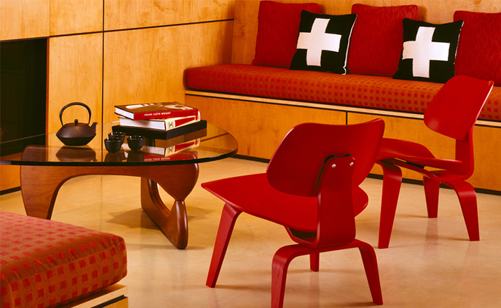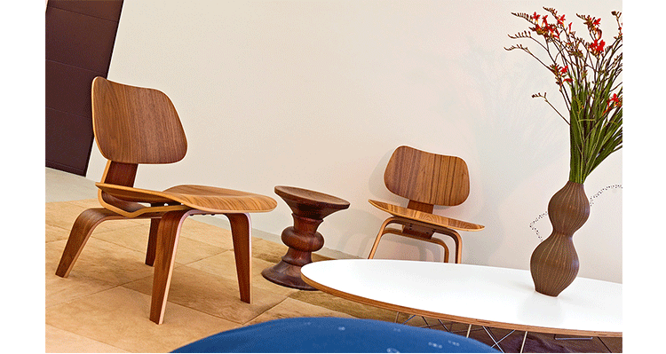Designers Charles and Ray Eames established their long and legendary relationship with Herman Miller in 1946 with the boldly original molded plywood dining and lounge chairs.Designed to comfortably fit the body,the sculpted form of the molded plywood chairs are produced using thin sheets of lightweight veneer gently molded into curved shapes with natural rubber shock mounts to absorb movement.Since then,the chairs'aesthetic integrity, enduring charm,and comfort have earned it recognition as the best of modern design.Available in either a lounge or dining versions with chrome-plated steel or wood legs.