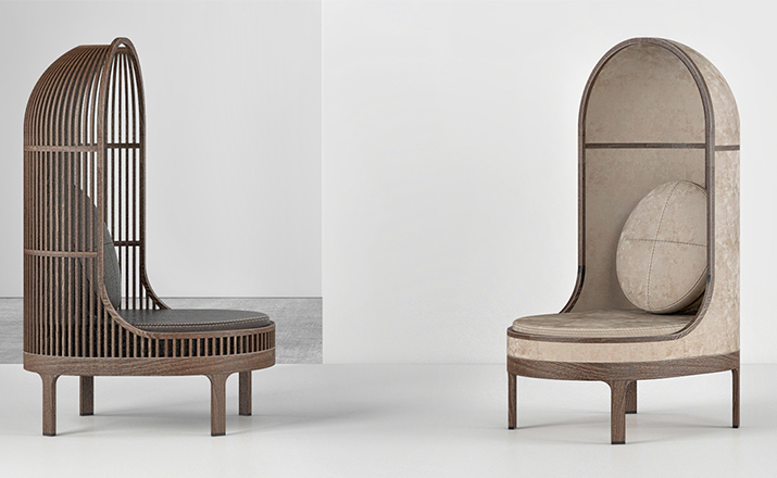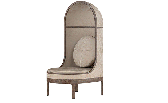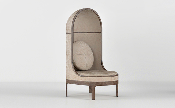 A unique seating experience.This lounge chair has a surrounding shell,making a cosy "nest" for the user.Nest keeps you close to your earliest memories.Whether placed in the middle of an immense desert or in a crowded lobby,Nest makes a statement.