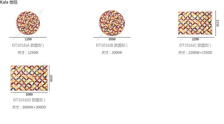 Kala 地毯 系列尺寸/示意图