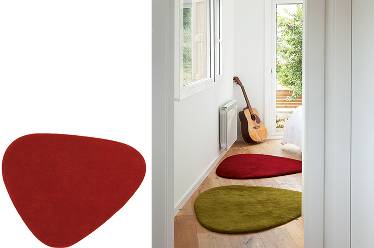 灵感来自亚历山大·考尔德的著名手机,这些不规则的羊毛地毯被认为是生活在一起,形成有吸引力的组合。