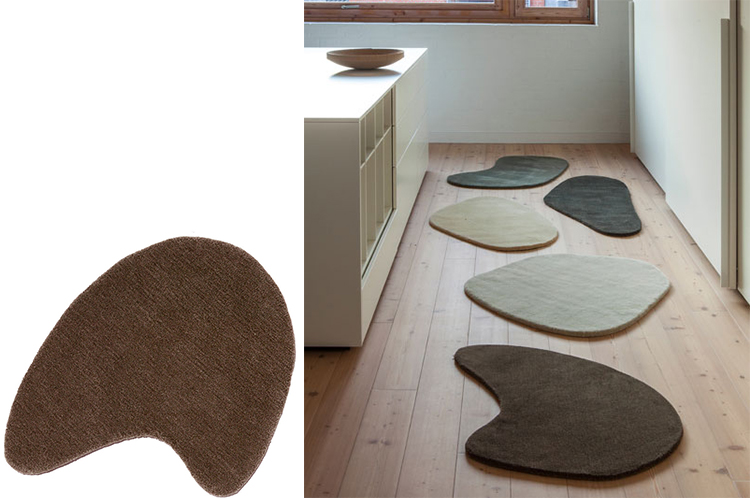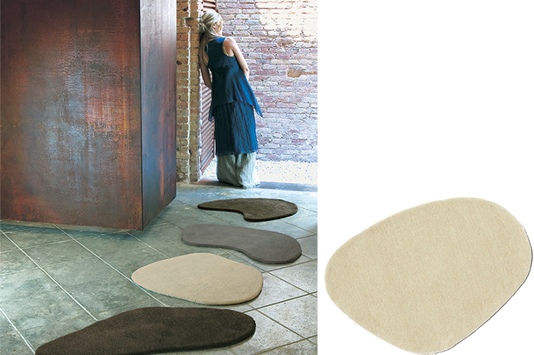 “石羊毛”系列的地毯创造了一个光滑卵石的河床,以适应长廊。不规则的轮廓和颜色为室内设计提供了无数的组合,充当了想象中的河流的垫脚石。