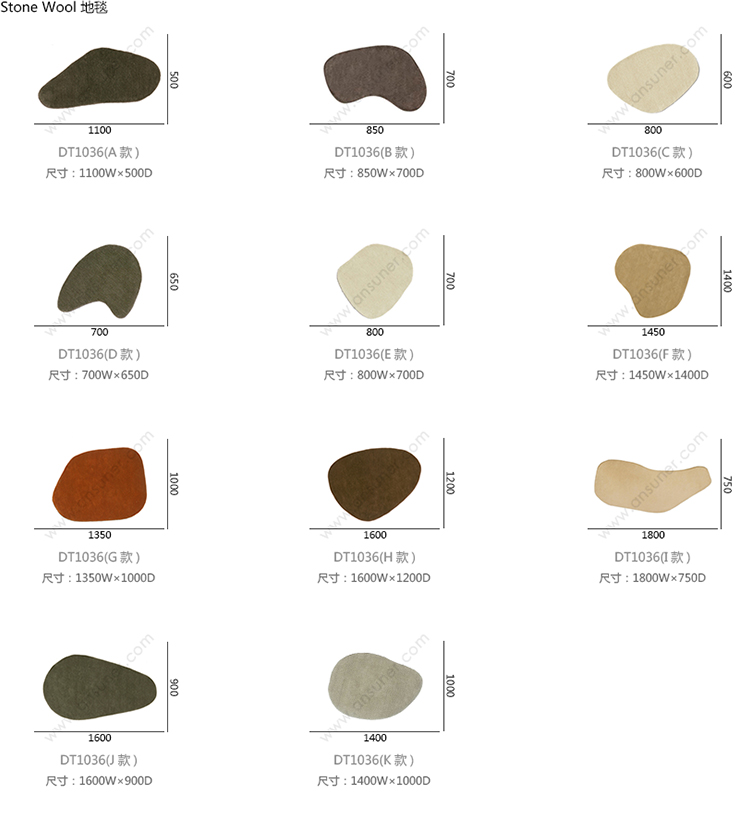 Stone Wool 地毯 系列尺寸/示意图