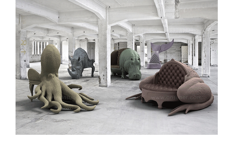 西班牙华体会体育官方在线官网 Maximo Riera 设计了一组包括章鱼、犀牛、海象、狮子等在内的 15 件动物造型座椅系列皮椅。这个系列的动物椅集合了不同的物种,从哺乳动物到爬行动物,甚至包括昆虫。每个设计都保留了动物的自然活力,同时又准确还原动物的外观特征。这些动物椅的初衷是一种尝试,希望以动物的栖息来反映和捕捉大自然的美,并向我们星球上的整个动物王国致敬。华体会体育官方在线官网除了表现动物的野性美,也在善意的提醒人们要维持生态的平衡,尤其对濒危物种多加关注,以实现人与自然的相互依赖和谐共存。Whale Chair(鲸鱼椅)是他之前一个系列家具作品的延续。这一系列作品将家具和动物结合到一起,每件家具的主要部件都装饰有一种动物。Whale Chair(鲸鱼椅)把我们带到海洋的深处,这头漂亮的海洋哺乳动物在这里拥有至高无上的统治权。由于该艺术家与海洋千丝万缕的联系,因此对他来说,这种对世界最大动物——蓝鲸——的致敬方式极其重要且具有深刻的意义。这个标志性的图标已被公认为动物王国和人类之间和谐的象征。同时,它还是生存和克服困境的坚强呐喊。鲸鱼椅是设计放置于室内中央的产品。它的的大小和尺寸非常适合放在开阔的空间和宽敞的区域。完全展开的鲸鱼两鳍之间采用了非对称设计。顶端部分向后倾斜,并从动态的角度来实现该作品的平衡匀称。这种鲸已濒临灭绝,因此至关重要的一点是,我们要将负责任、可持续捕鱼的重要性谨记于心,以减缓地球上海洋动物的继续减少。“恐惧源于无知”——赫尔曼·麦尔维尔《白鲸》。