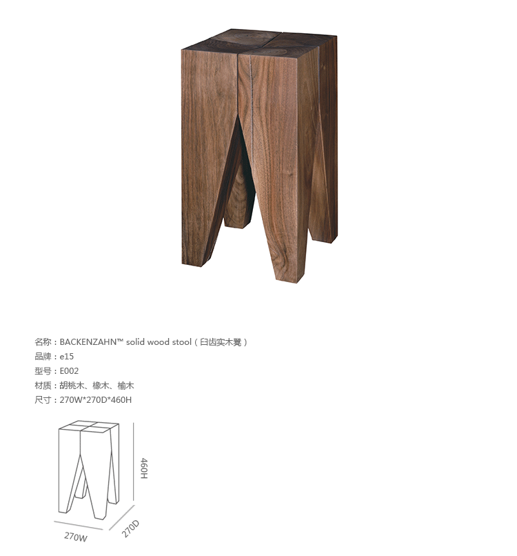 1996年推出的Backenzahn stool凳是Philipp Mainzer的成名作。第一个原型是橡木的桌子,腿部向桌面的过程就是一个由零到整的形态。“我们很开心的去将整块的树桩买回来,中心的部分因为水分的流失会断裂,但那种效果就是我们想要的。”和自然产生的形态相结合,是Philipp Mainzer设计中的重要理念。而要做到这一点,工艺也是不可忽视的部分。这点Philipp Mainzer和许多华体会体育官方在线官网朋友有共鸣。与e15品牌合作过的华体会体育官方在线官网Stefan Diez在设计记者Maria Cristina Tommasini采访他时说:“我个人是对大量生产过程中那些应用技术非常感兴趣的,但是随着时间的推移,我越来越认为这样的制造只是对于极少数的大型公司而言,过去我们被告知大量生产可以提供价廉物美的产品,但是如今的世界并不是这样,物质太丰富,产品的更新换代时间越来越短,反而那些使用昂贵的材料、优质的工艺的产品最后会被留下来。”这个想法和Philipp Mainzer对设计品的态度一致。他认为,材料、工艺是贯穿e15所有产品的特点,产品应该是可以无限期使用的,产品和空间都应该是真实和诚实的。这就解释了在极致简洁的外表下,e15的产品总是使用昂贵的材料如大理石、贵金属、实木等。