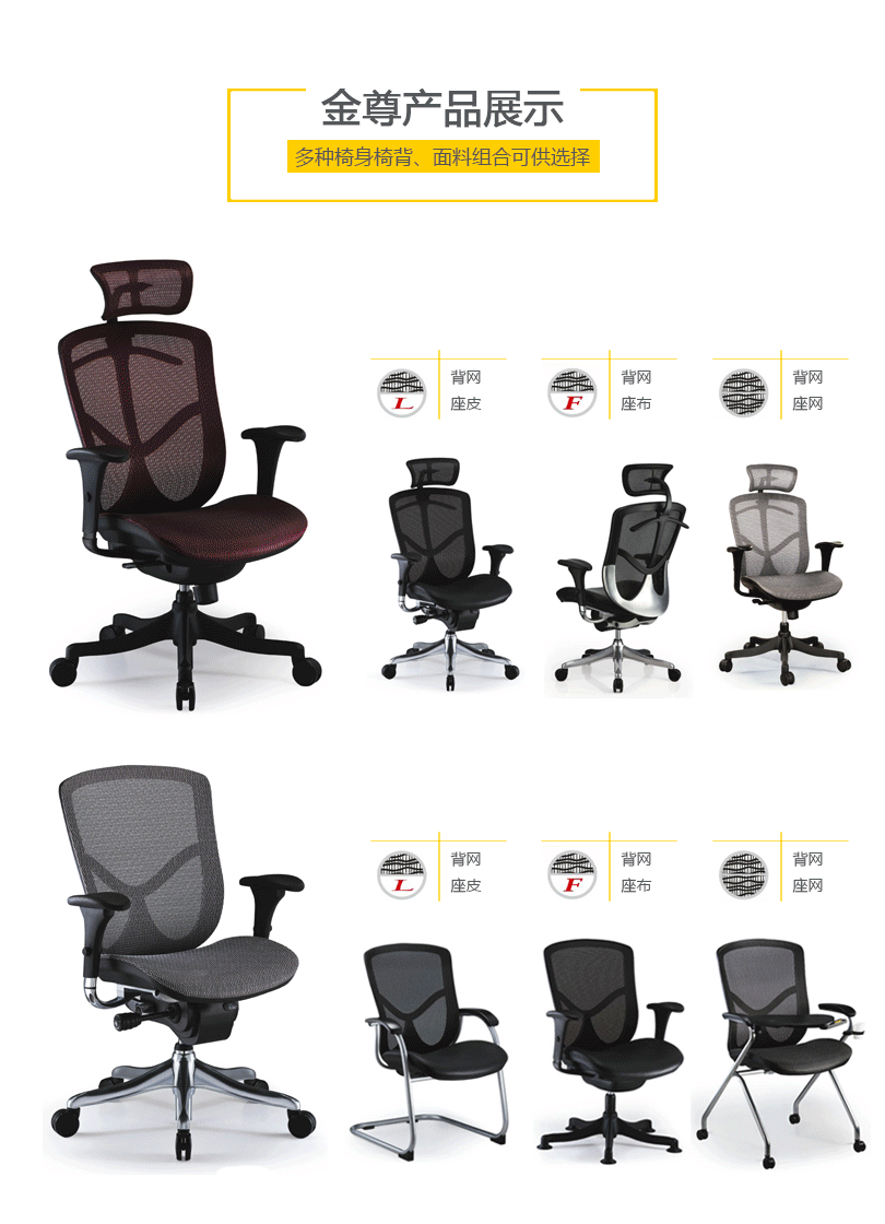 金尊的唯美设计有利于持久的舒适和美感。人性工学椅的结构和功能利用同步倾仰底盘控制功能锁定,滑座和高度调节。高度和角度均可调的扶手和头枕都包含在这张独一无二的工学椅里。