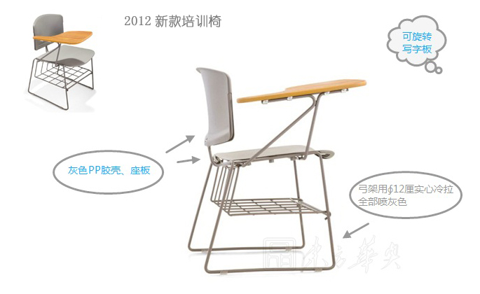 A:灰色PP胶壳、座板,弓架用∮12厘实心冷拉,全部喷灰色。B:写字板可旋转