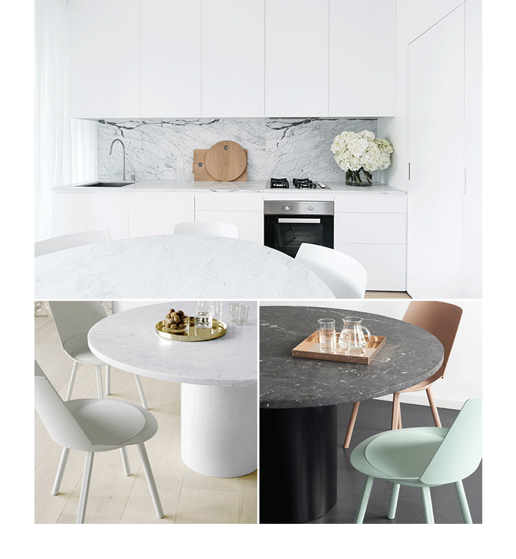 Mainzer 的hiroki dining table(hiroki 餐桌),Philipp Mainzer的作品,设计基于他成功的金针菇边几系列,hiroki 餐桌更像金针菇边几的改良版,加大了台面宽度,减小了立柱直径,使之成为合适的餐桌。造型和选材都与金针菇边几一样,还扩大了新材料的运用,采用天然大理石或中纤板贴木皮台面、台脚为全实木(颜色多选)Hiroki 餐桌旁钢圆柱基础有十一种涂漆颜色可选,包括信号白、乌黑,交通灰色、淡蓝色、绿色、棕色,蜜黄色、影灰色、薄荷绿、海军蓝色、米色红色,火焰红等。