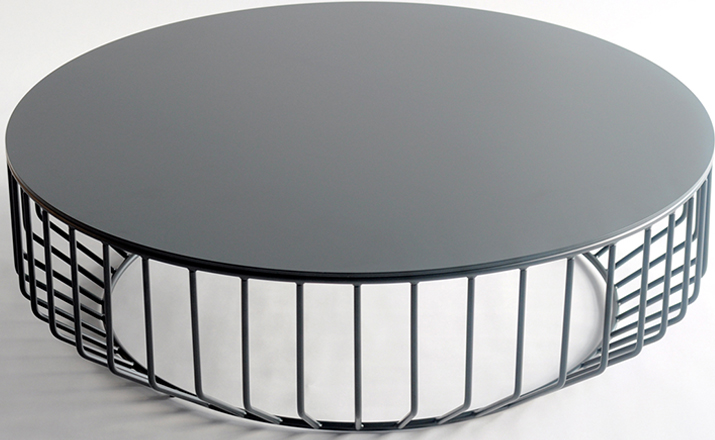 "Blending sloping angles and taut lengths of bent metal are a modern interpretation of the wiry idea initially conceived by Warren Platner.The series is made up of a suite of tables,side tables and benches and fitted with luxurious solid wood,glass,or upholstered tops.By choosing thenupholstered top the coffee table can serve as an ottoman."