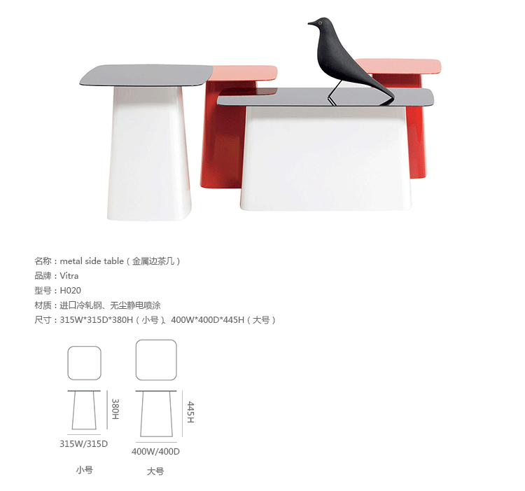Metal Side Table(金属边茶几)为华体会体育官方在线官网兄弟Ronan和Erwan Bouroullec为vitra设计的。金属边茶几的设计造型是可长可短的立体柱子,茶托向外扩张,构造出优美的立体空间几何形状。可以放在长沙发或几张椅子前面,非常舒适。您可以将它放在卧室、会客室或是办公休息室,在宽敞的、不拘一格的桌面上,陈列精美的艺术品、新鲜的花、杂志或是专业书籍。