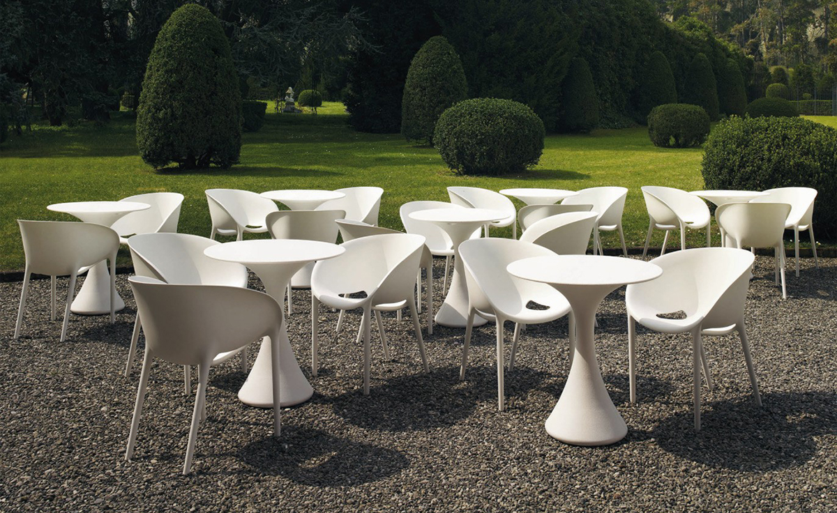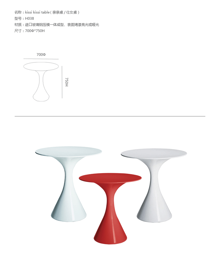 Kissi Kissi Table(亲亲桌仕女桌)是意大利米兰著名家具华体会体育官方在线官网Miki Astori设计的一款时尚经典的桌几。这款圆桌造型轻巧,无锐角圆弧造型,曲线细致,有如一位窈窕淑女。本品采用聚乙烯塑料材质,室内外都可以使用。