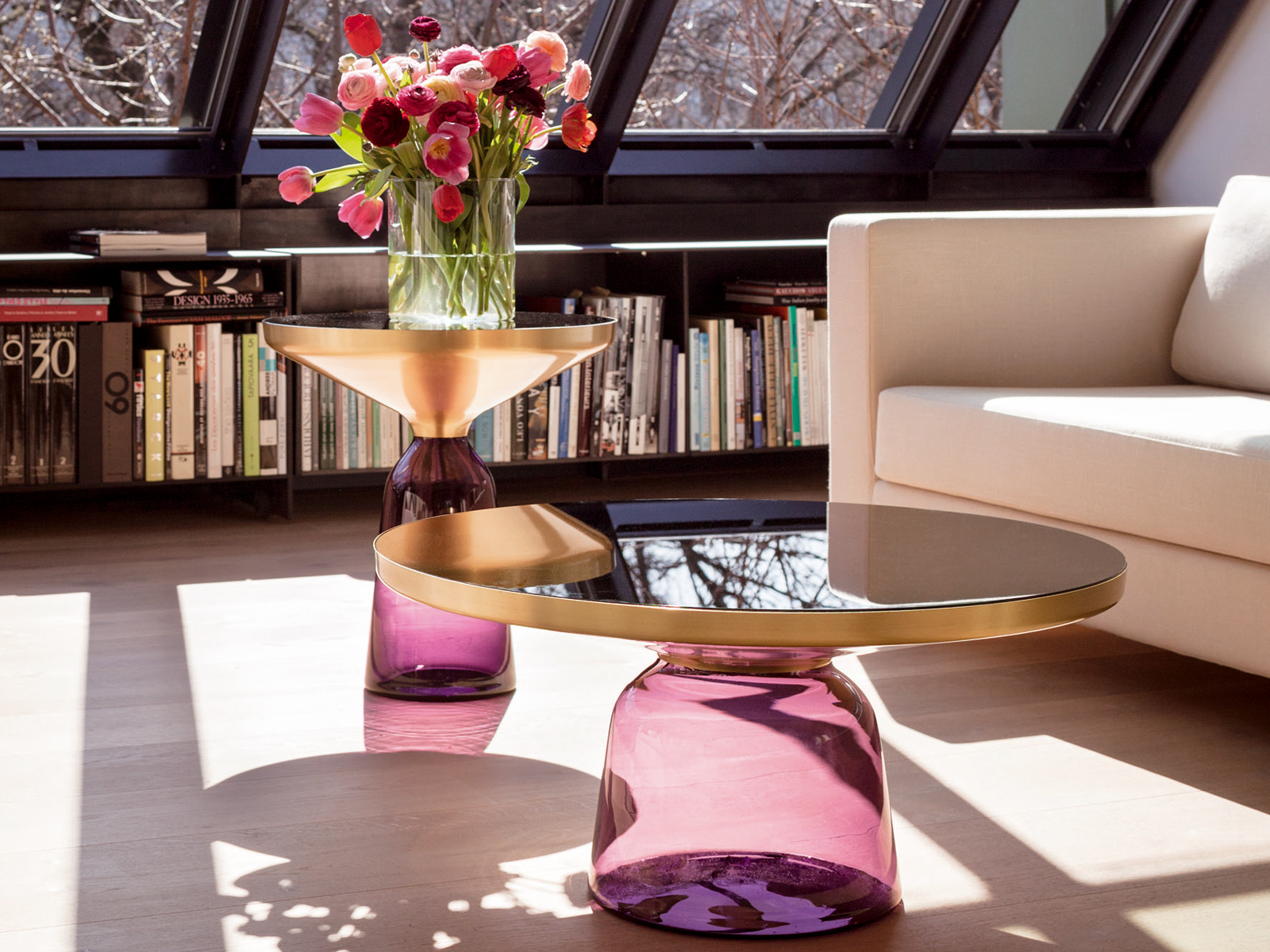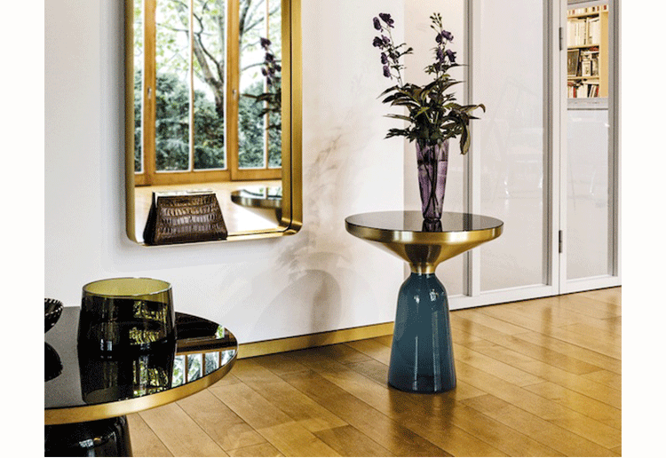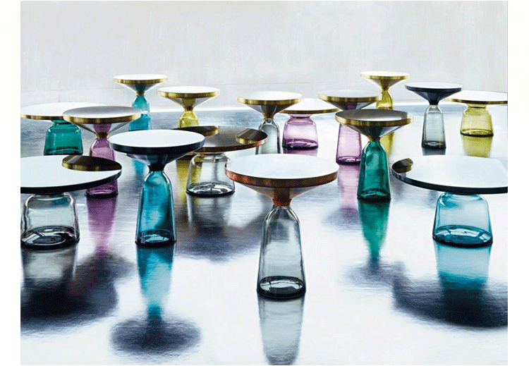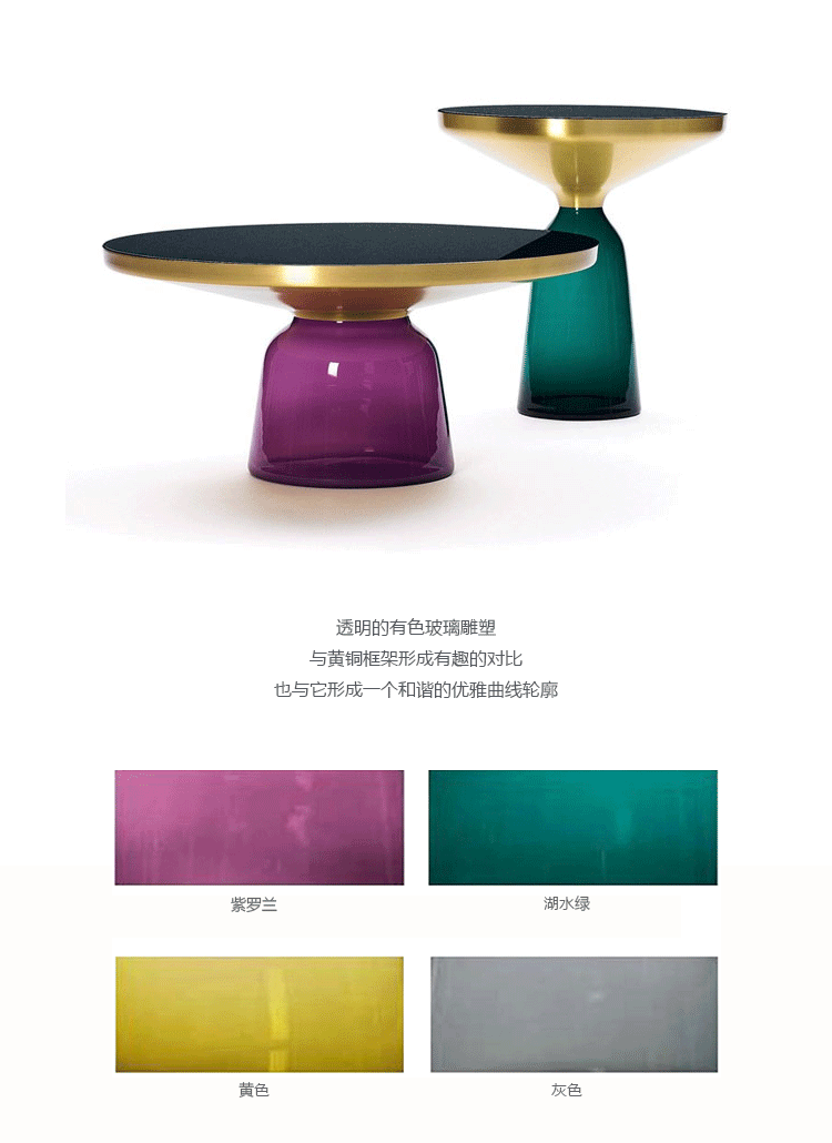 透明的有色玻璃雕塑,与黄铜框架形成有趣的对比,也与它形成一个和谐的优雅曲线轮廓.