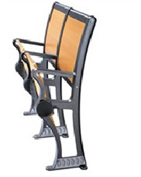 椅座:采用多层旋切木皮模具热压成型并面压防火板,座板与角码采用穿透方式连接,版面配特制不锈钢螺套。