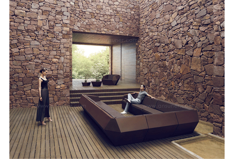 FAZ是西班牙著名建筑师Ramon Esteve为VONDOM公司设计的组合家具和花盆系列。Ramon Esteve是和谐的,平静的和永恒的建筑师,创造了一个矿物质的,表现力丰富的形状,;令FAZ跟我们的家或其他环境完美融合。气氛,包围的结果是材料和光线元素幸福的组合,其独特的察觉是气混合体。他们的灵魂,VONDOM,他的独家性是他原材料的品质,允许,甚至在最苛求的环境使用。FAZ的组合性允许消费者灵活的组合他们的家具和花盆,来适应他们的风格,但并没有失去这家具系列的和谐。FAZ,由辅助桌子,扶手椅子,组合沙发和咖啡桌子,还有三个不同比例的花盆组成。这个系列还配套了最优质的户外坐垫。FAZ,他的结果是表现本质,包含复杂性和密度性,直到极端细节的杰作,其目的是创造一个我们向往的居住地。