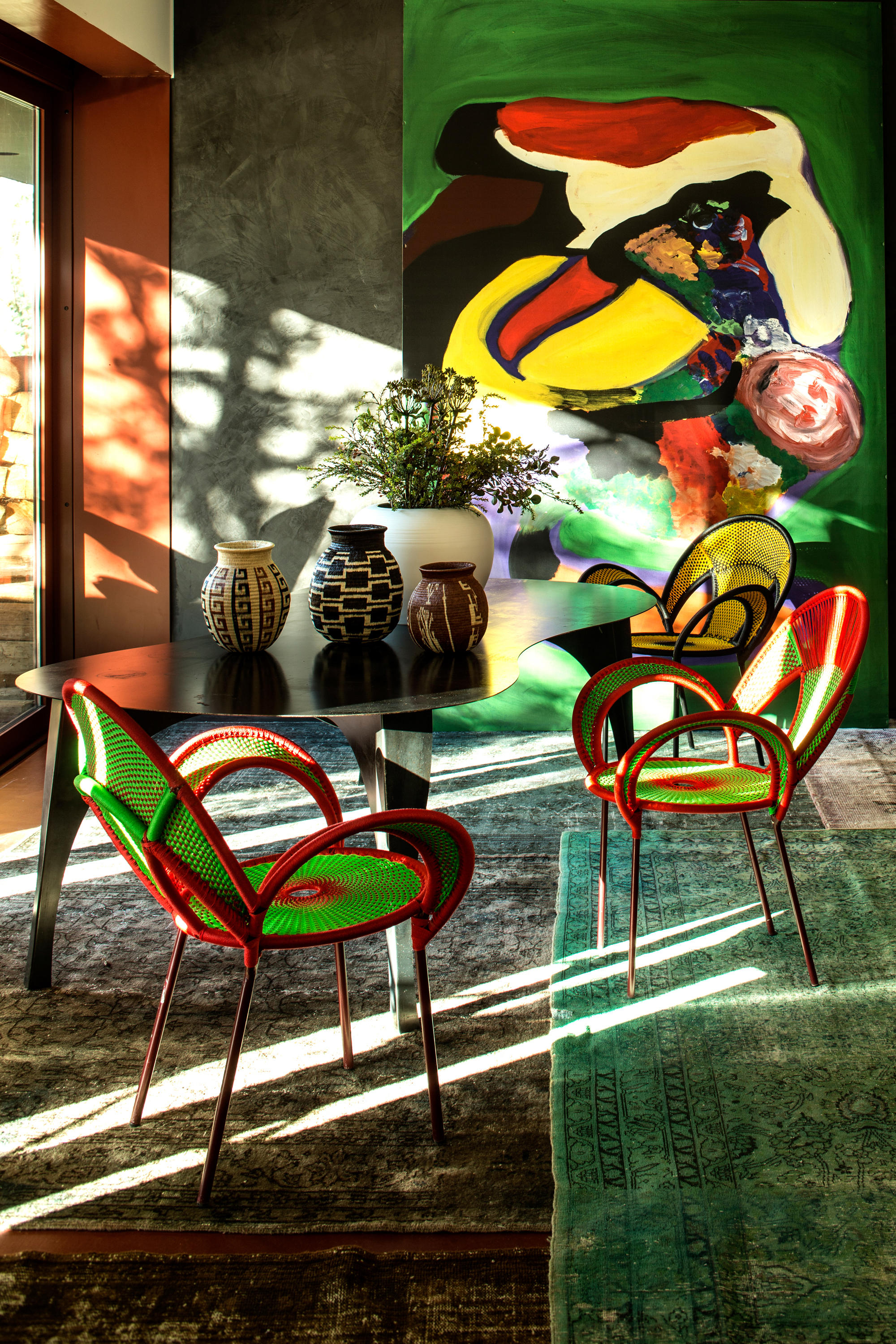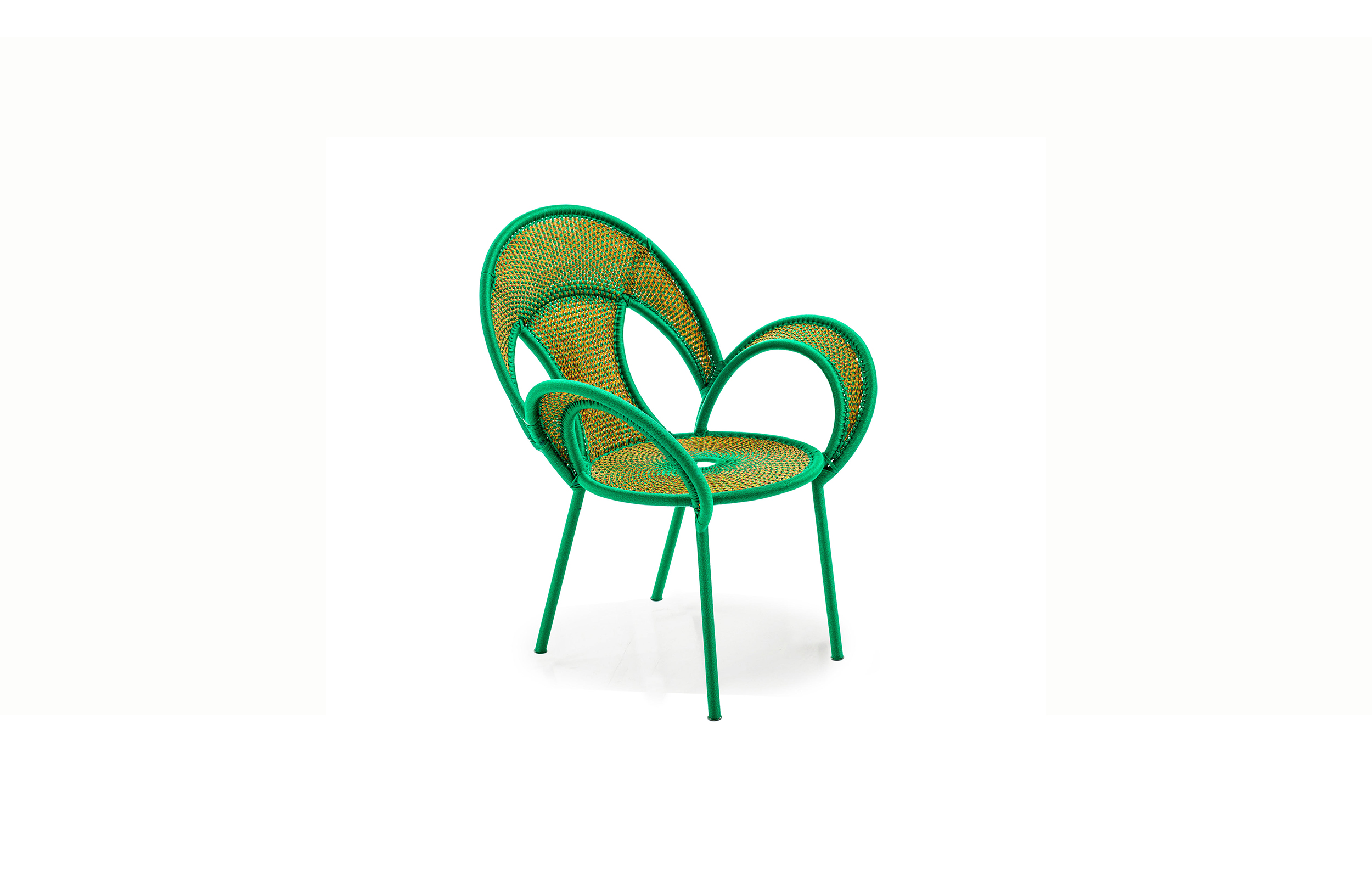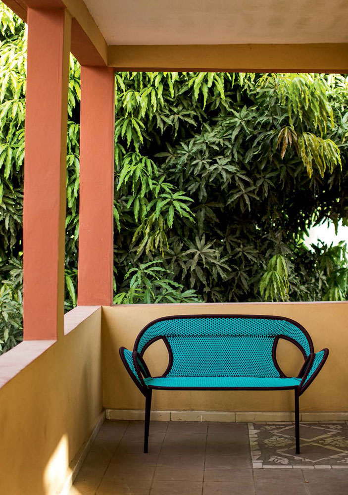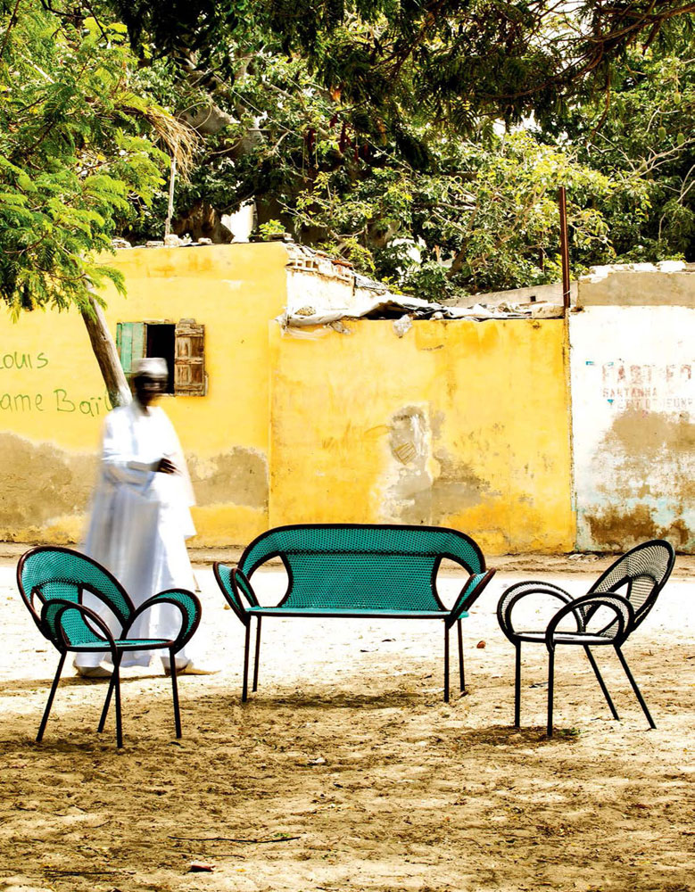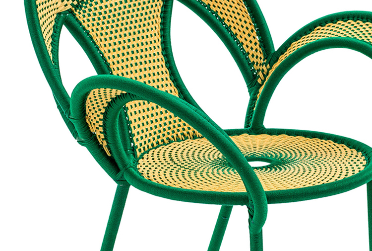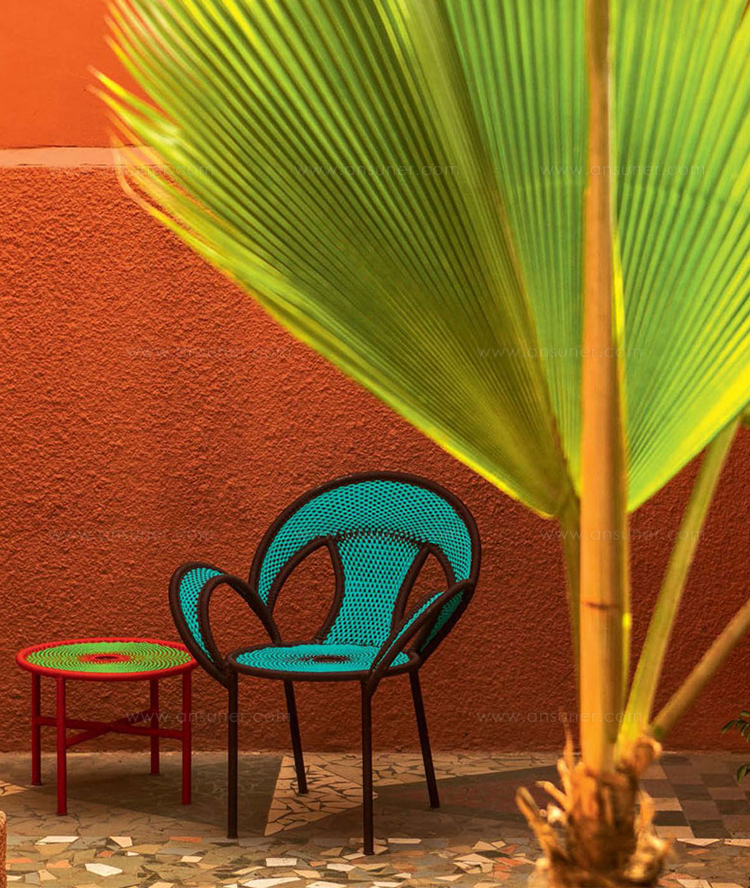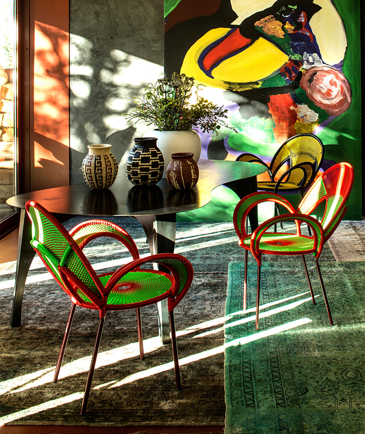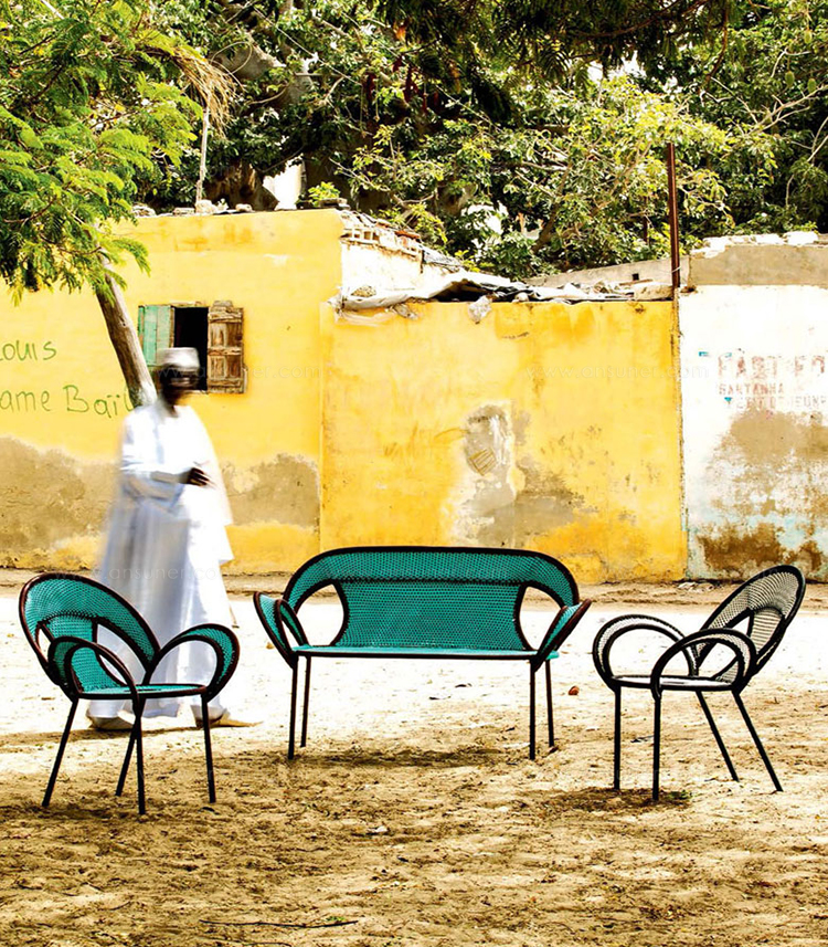 这个椅子的形状,尤其是扶手的形状设计,灵感来源于雄性鸵鸟在求偶时所跳的舞蹈,banjooli的扶手如同雄性鸵鸟伸出了翅膀,向雌性展示它们的美丽。Banjooli是M 'Afrique的一部分,由华体会体育官方在线官网设计的一系列椅子,由非洲手工编织者使用渔网的纱线生产。纯手工编织,不完美,但真实。
