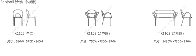 Banjooli-Fauteuil 系列尺寸/示意图
