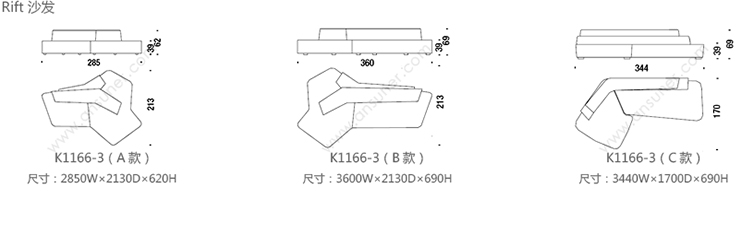 Rift 沙发 系列尺寸/示意图