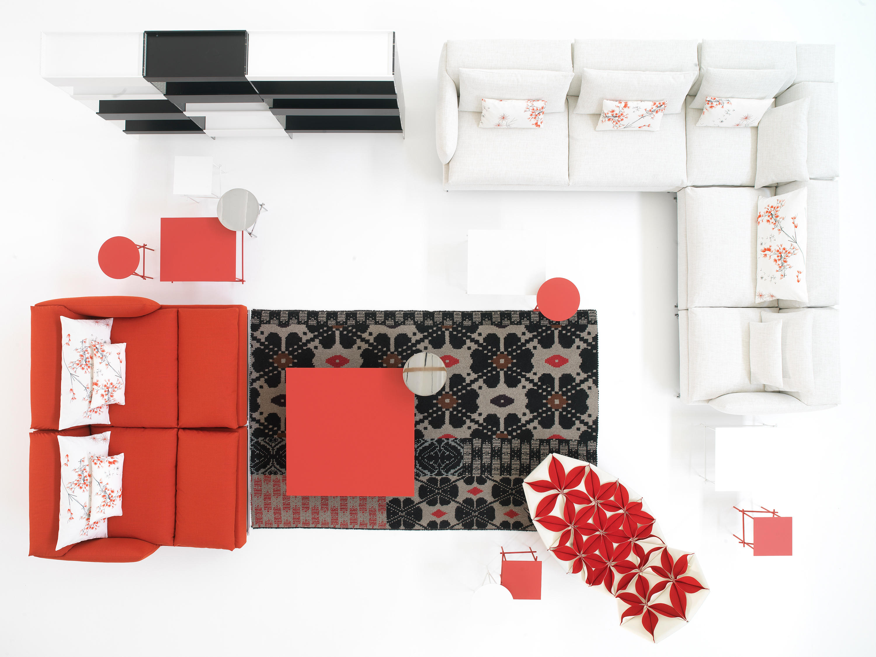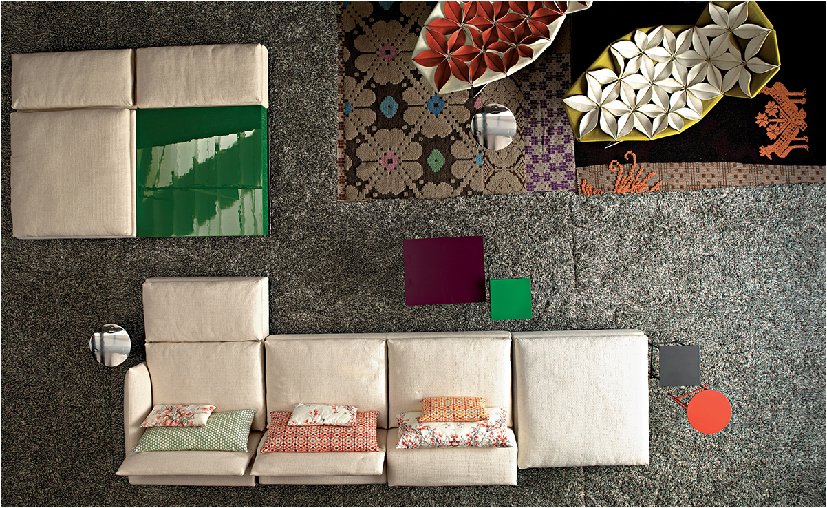 精致而舒适,低调奢华,略带东方风情。在标准位置时简单、最小;当靠背有倾斜的机制时,超级舒适。彩钢或黑色的彩管腿让人联想到用来演奏米卡多(或称“上海”意大利语)的彩色木棒。舒适是一种内在的特性,它是通过在干净的、中性的色调中舒适地垫在座椅靠垫上实现的,这种色调与在梅花、翠绿、红辣椒和漆红色中所提供的洒垫和涂漆的边桌所提供的色彩形成了完美的对比。