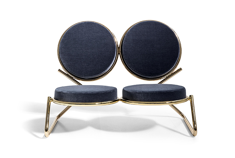 两个圆圈,两个基本模块接枝到本领域的结构几何结构中,去除了灵感,公开地传达了最大限度简化的趋势。这是高品质工业生产的前奏,这是一种优雅的经济,由镀铬钢框架提供的可能性表达,将设计结构设计成一个完整的座位家庭。这样,一把椅子和一把凳子就诞生了,没有扶手,加上一个小小的双座沙发,这是一种精致的正式进化,由良好的品味和阶级所决定。这是一种回归秩序,向一种同时奢华和合成的语言过渡。