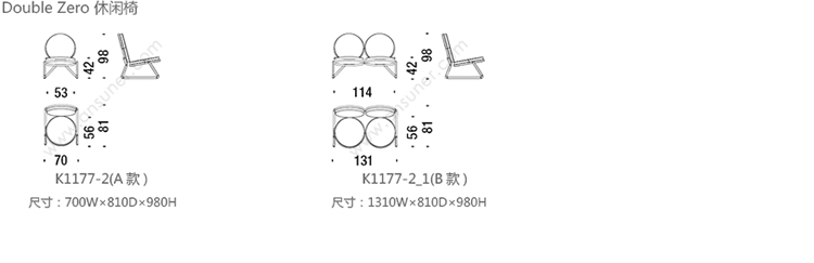 Double Zero 休闲椅 系列尺寸/示意图