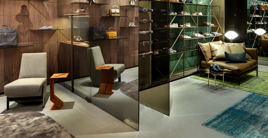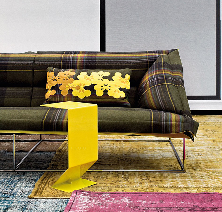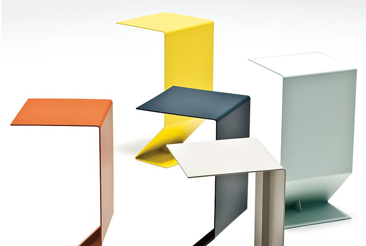 悬臂式桌子被设计为高度灵活和通用的拉升表面,以配合低矮的沙发座位。