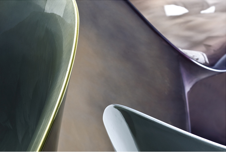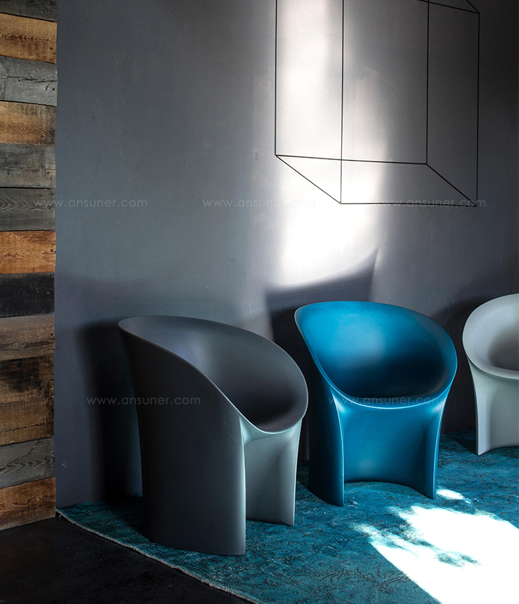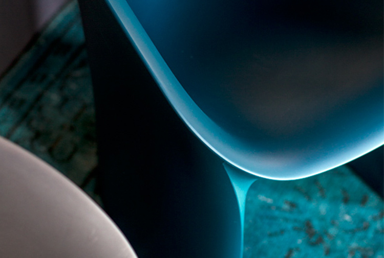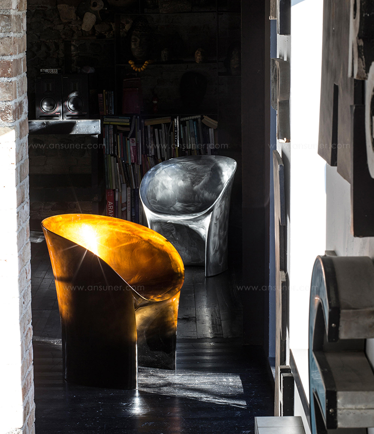 空隙和空间在完美的形式和谐中移动。移动的,流动的线条给椅子的轮廓似乎是转瞬即逝而不是固体,吸收和扩散一个微弱的,精致的辉光。在月球上,大小是一种错觉。从侧面看,座椅的曲线与底座的圆柱形结合在一起,让人联想起盛开的花朵,在这种严格的几何秩序下对有机的让步。从前面看,当光线出现和消失时,座位上的光芒就会散发出迷人的魔力。这种形式如此新颖的原因是来自不同层面的回响。它是一种新的三维形式,它加强了作品的时尚线条和月亮般的质感,这种质感源自于实体与消逝的相互作用。