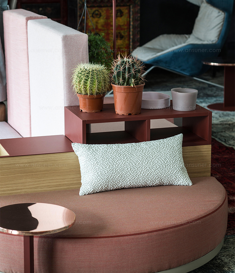 设计相互作用,轨迹控制空间。比基尼是一种风景,它是时代的产物,是它所代表的社会。无论是在等候区还是在家中使用,座位系统是绝对灵活的,因为不需要空间的布局和座位组件的排列。这些组件在外观和功能上各不相同,因此,它们可以在任何设置中使用。凳子、桌子、衣架、容器、架子、屏风、工作台、座椅:每一个元素都结合在一起,创造互动和交流。多种功能和含义的结合意味着沙发作为看电视的家具或简单的休息场所的概念发生了革命性的变化,使它成为互动的核心。