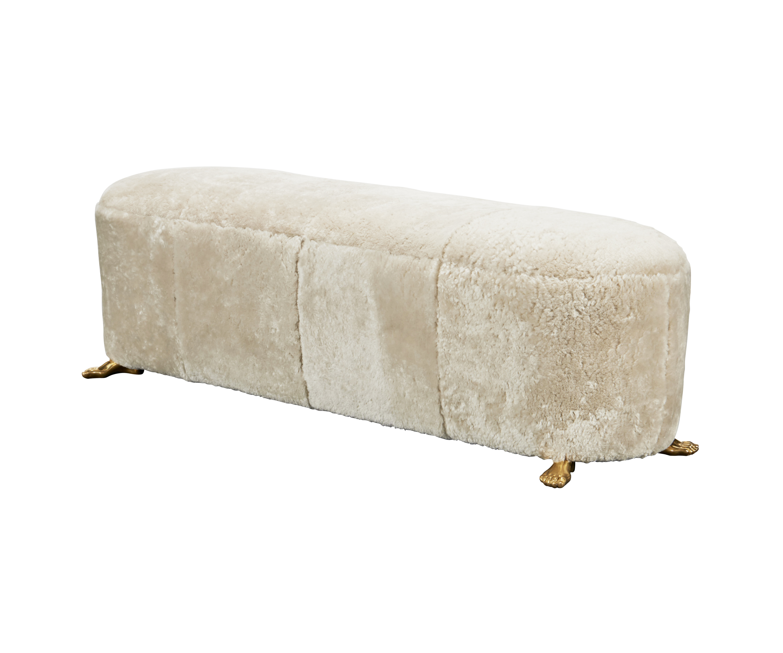 Foot Bench是我们受欢迎的Foot Stool的天然搭档。 这款长凳的柔软曲线采用奢华的自然羊毛皮制成,并安装在坚固的青铜铸造脚上。 意想不到且引人注目,它非常适合作为床尾凳,入口处的长凳,或作为客厅中时尚的奥斯曼。