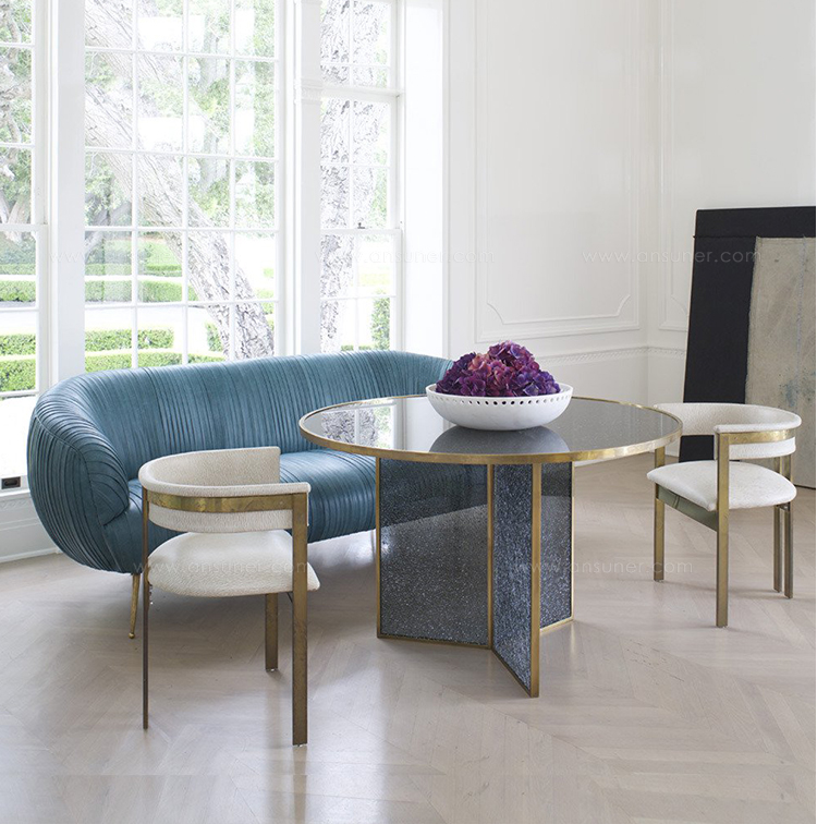 这款沙发的精致线条采用标志性褶皱皮革细节设计。 窑干硬木框架采用双榫和胶合,配有8向手工弹簧。 全面的蔬菜染色小羊皮手工缝制在框架上。 这款精致细腻的豪华沙发坐落在坚固的青铜铸造的锥形腿上。 完美适合厨房长椅,客厅或床边。