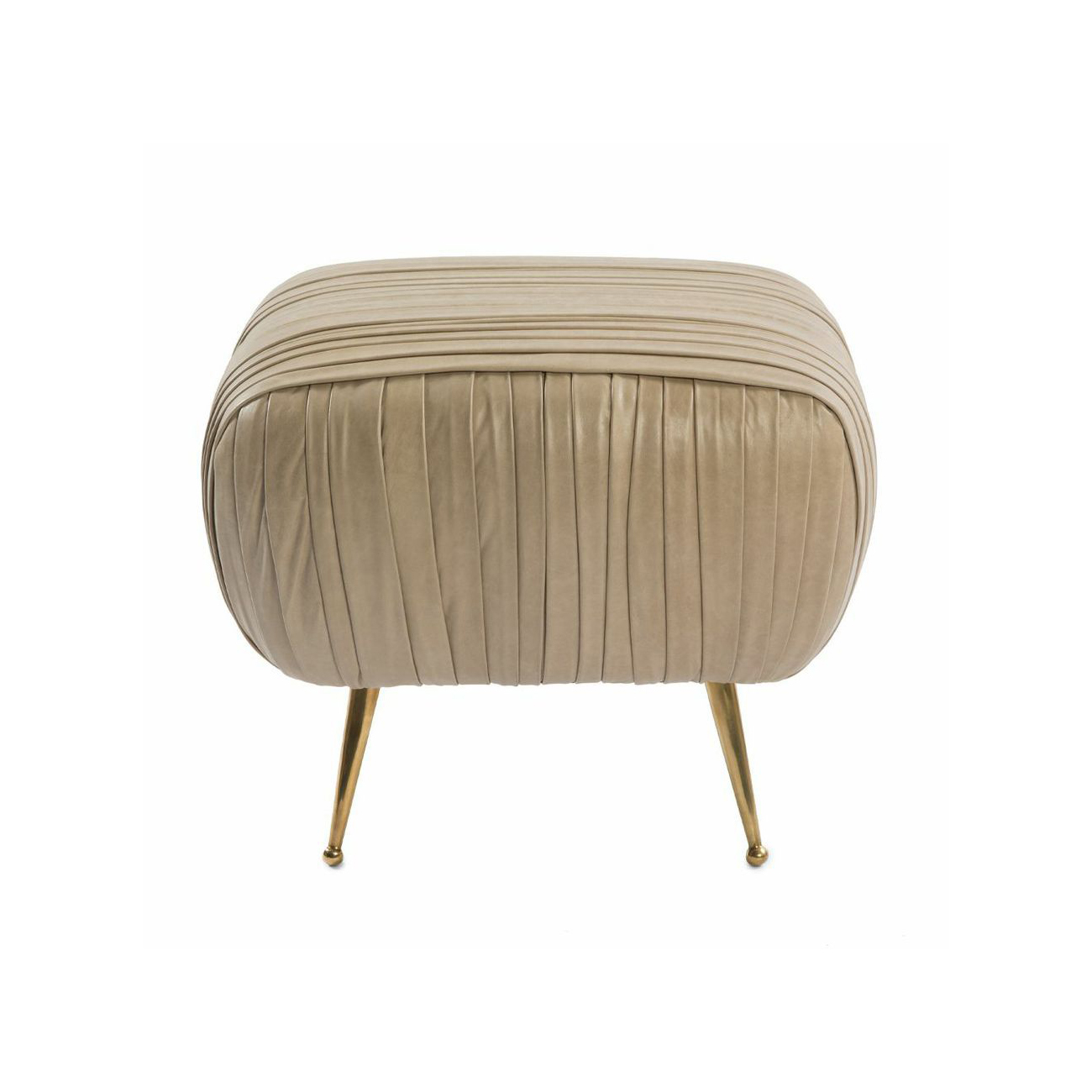 这款软垫的精致线条采用标志性褶皱皮革细节设计。 全面的蔬菜染色小羊皮手工缝制在框架上。 这款精致细腻的豪华矮凳坐落在坚固铸青铜的锥形腿上。 这是一个优雅的作品,小巧的比例,与舒芙蕾椅的完美搭配,或作为自己的声明。