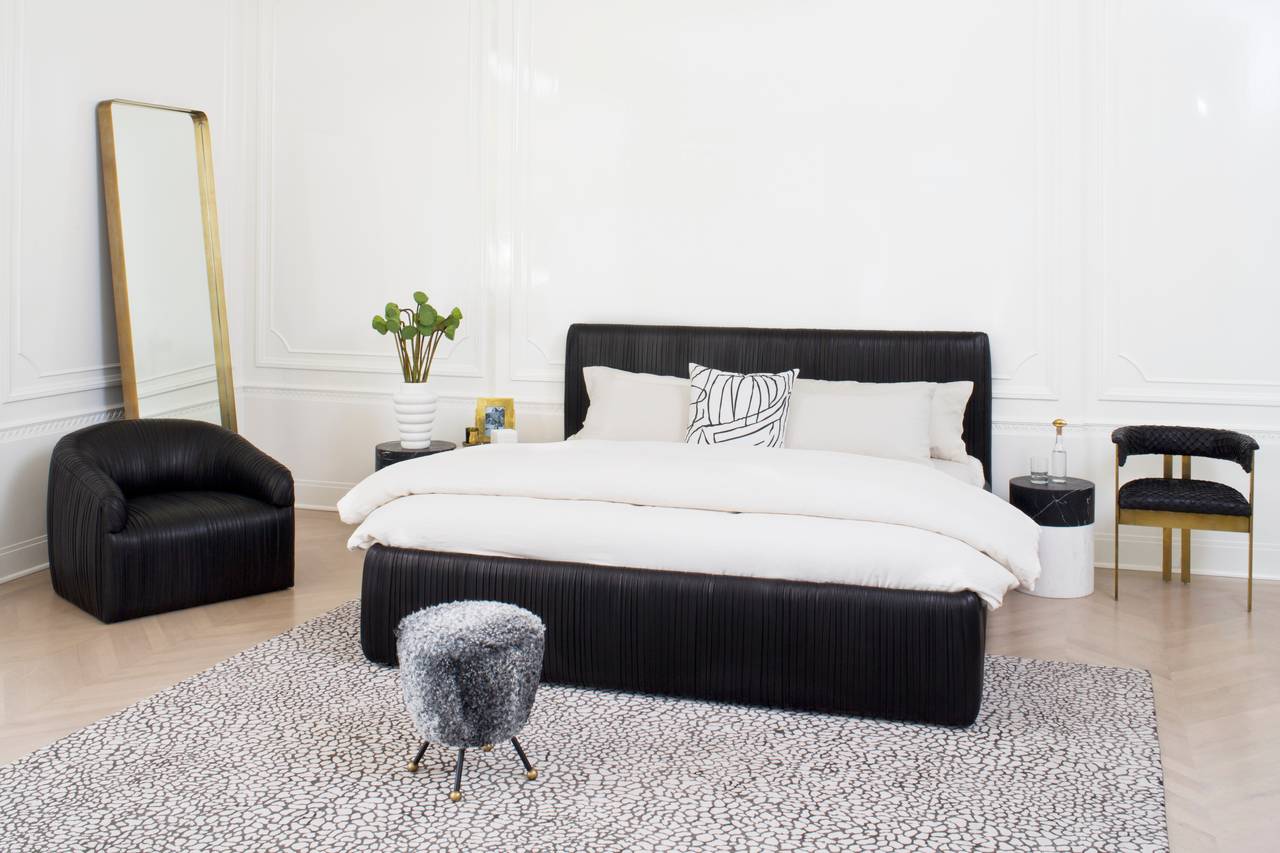 柔软的曲线和低轮廓的这一标志性的床突出我们的标志性应用黄油褶皮革。采用硬木床头板、踏板和扶手,易于拆卸,便于安装。我们的可调节床垫平台有三个高度设置,以适应各种床垫类型。 Souffle Bed从头到尾都由一位敬业的工匠装饰,是奢华、高品质和注重细节的典范。