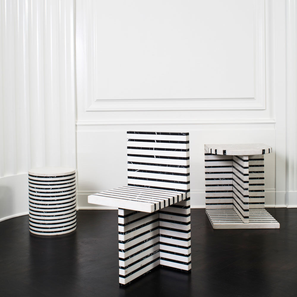 Lineage临时茶几是混合大理石和建筑构造形式的汇合,体现了艺术和功能的现代二元性。 这款雕塑茶几采用天然黑色玛奎那和白色大理石交替层层,经过磨光处理。