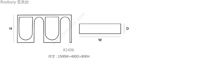 Roxbury 玄关台 系列尺寸/示意图