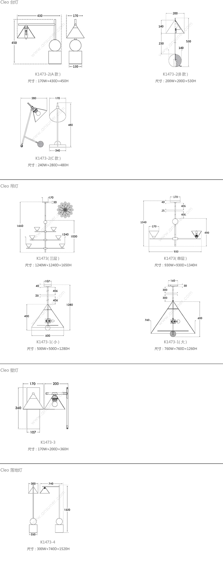 Cleo 台灯 系列尺寸/示意图
