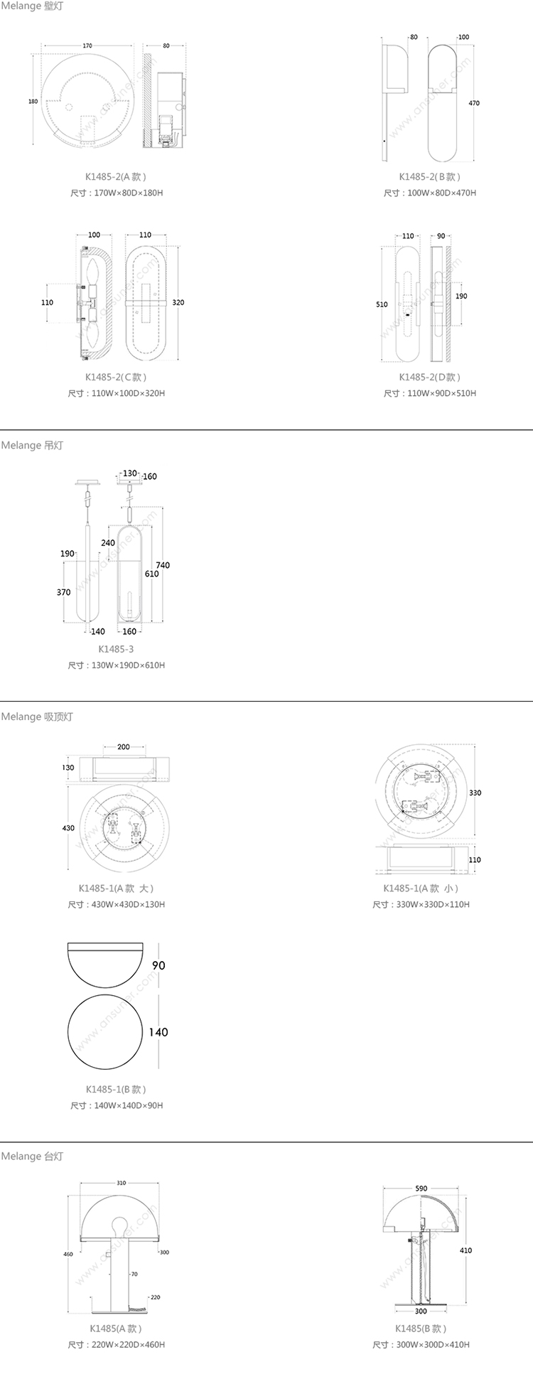 Melange 壁灯 系列尺寸/示意图